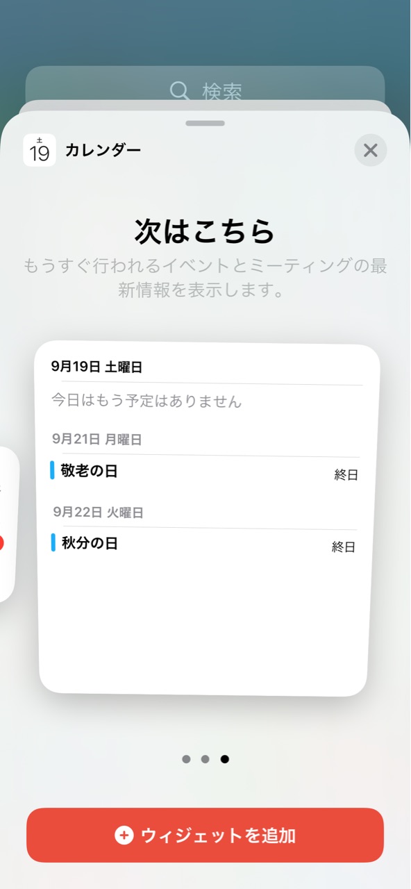 3つ目は、その日の予定+数日先の祝日が出てきたりします↓