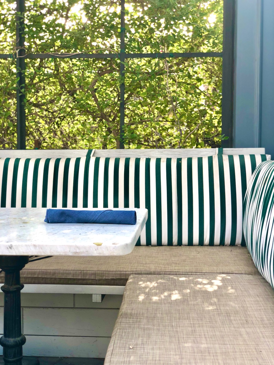 人気のレストラン、しかも週末の混み合うブランチする時間帯は避けたかったので、朝の9時(いつもなら、まだベッドでゴロゴロしている時間...)、そして”テラス席指定“で(店内で食べる勇気はない…)リザーブしました。