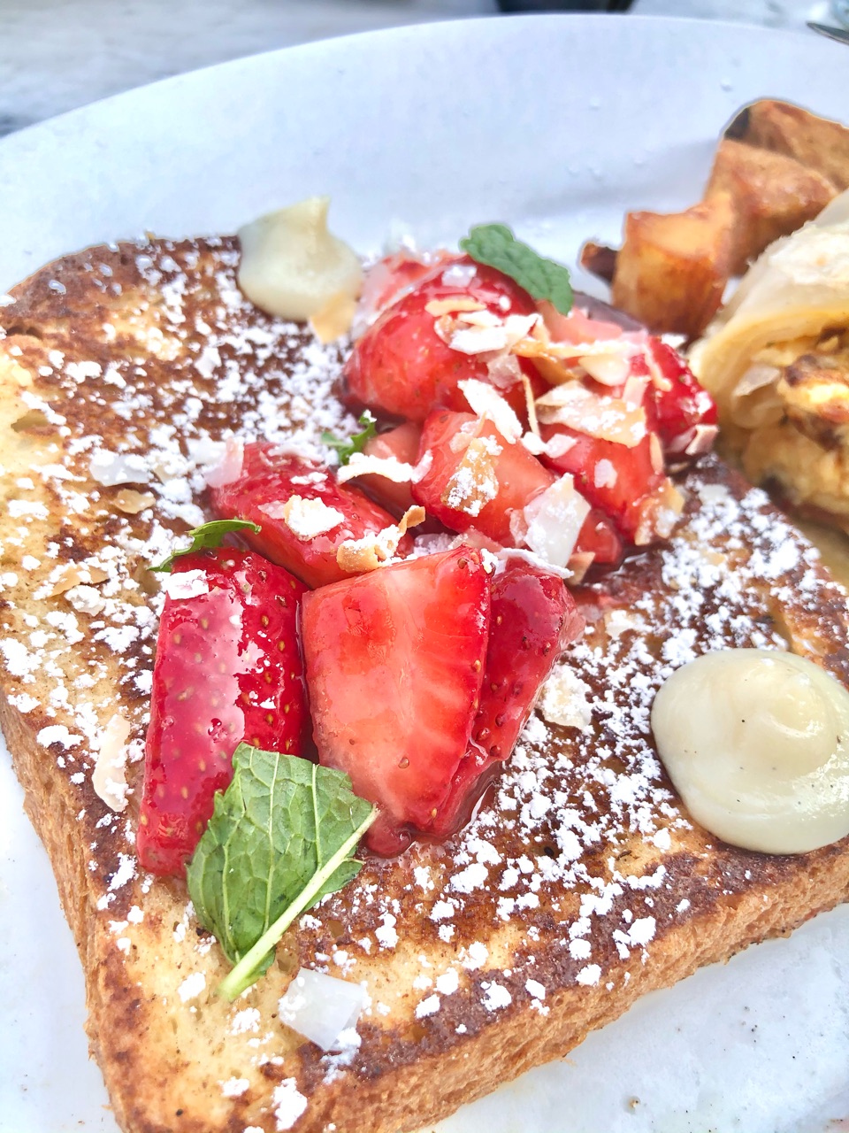 きっと、フレンチトーストだって持ち帰ったら、シナシナになっているだろうし、このパウダーシュガーだって、家に着いた頃には消えてるし...笑