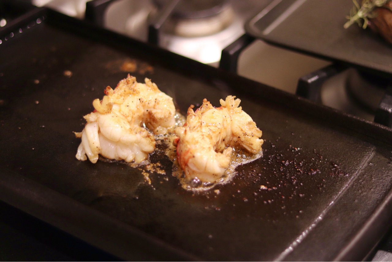 お肉を焼いている間に、ロブスターをレモンバターで焼いてくれました↓