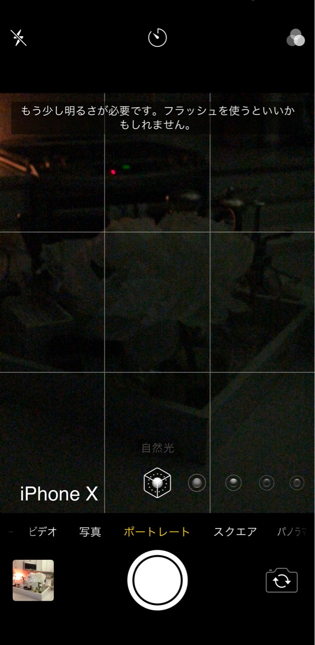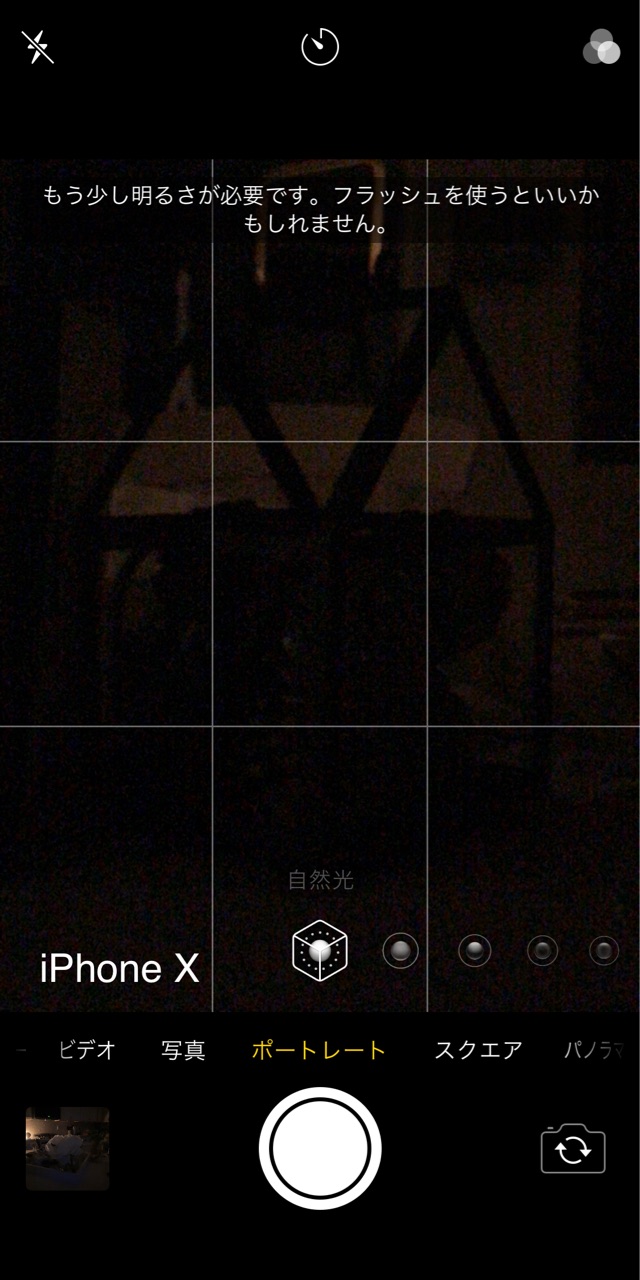 iPhone X、ポートレートモードは、暗すぎてシャッターが切れませんでした↓