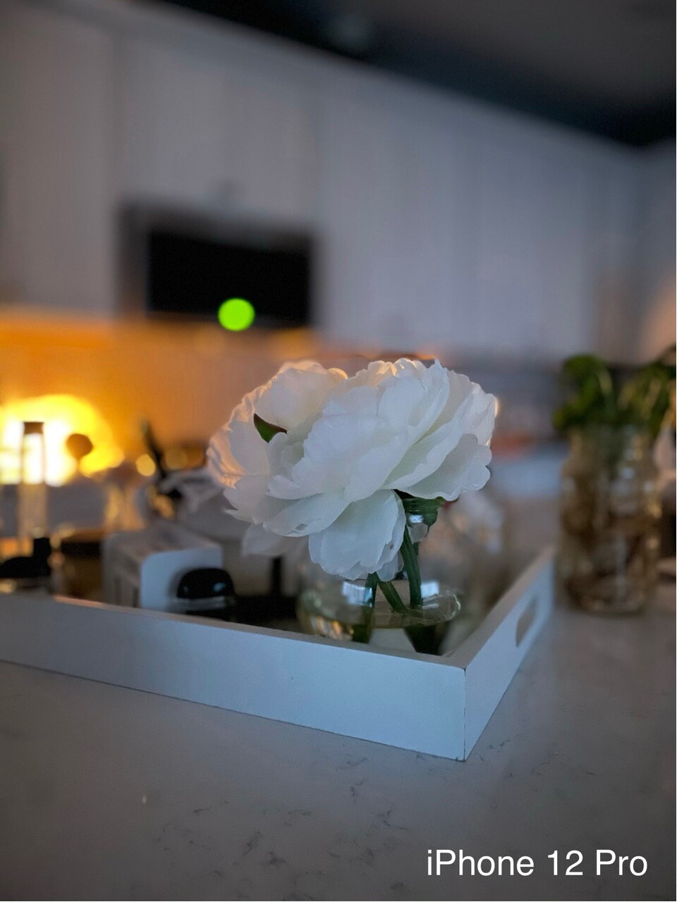同じくiPhone Xの広角(通常のカメラ)で、花にフォーカスさせ露出を上げると、この様に写真は撮れますが、かなり画質は粗めになります...↓