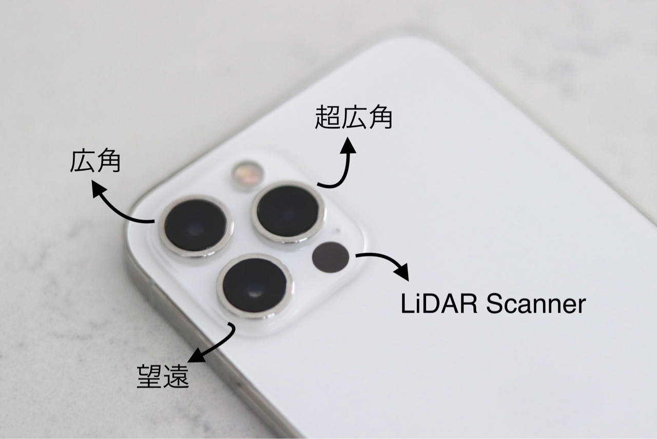 iPhone 11 ProやiPhone 11 Pro Maxと大きく違う所は、LiDAR Scannerの搭載↓