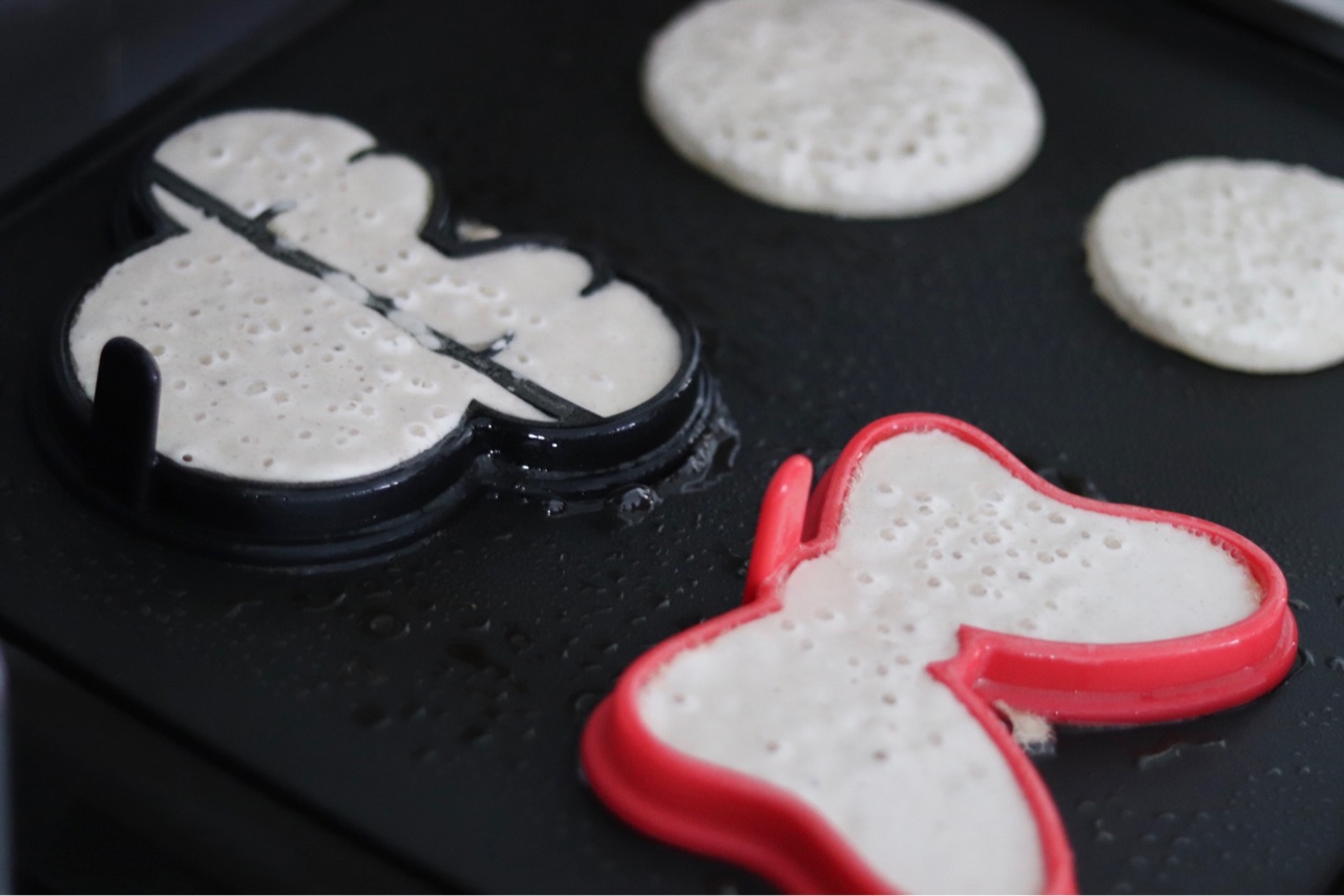 シリコン製の、ミッキーとミニーちゃんのパンケーキモルド。