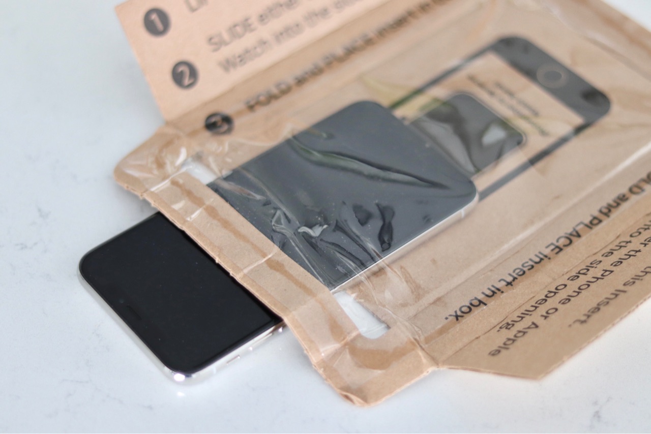 こちらの段ボールの様なキットにビニールが付いているので、その間に携帯を入れます↓
