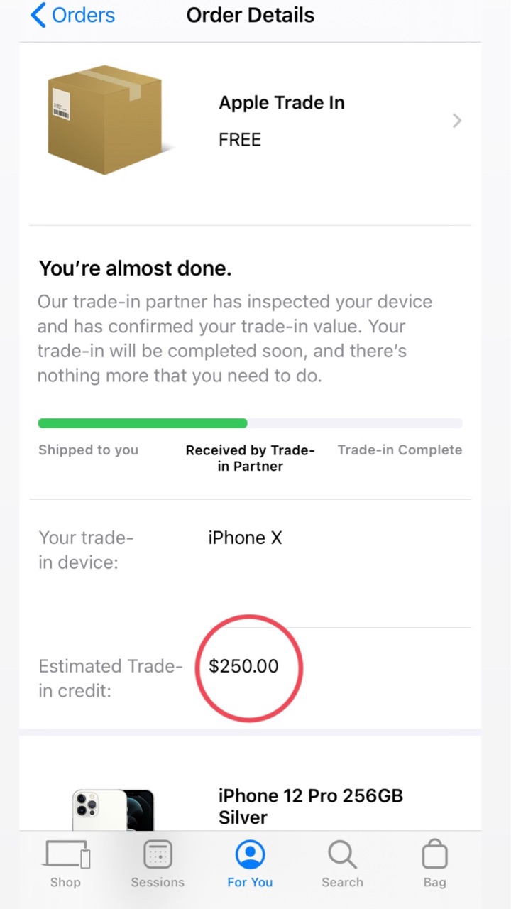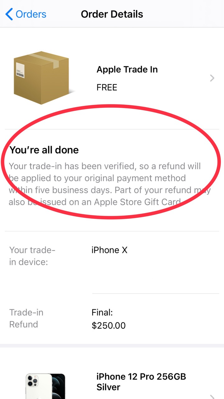 トレードインをするには、新しい携帯を購入後、自宅に”Trade in kit”が送られてきてから、14日以内にApple社の工場に送り返さなければいけなく、その後Appleで壊れていないかの検査を通過後に、その機種に基づいた金額が返金されます。