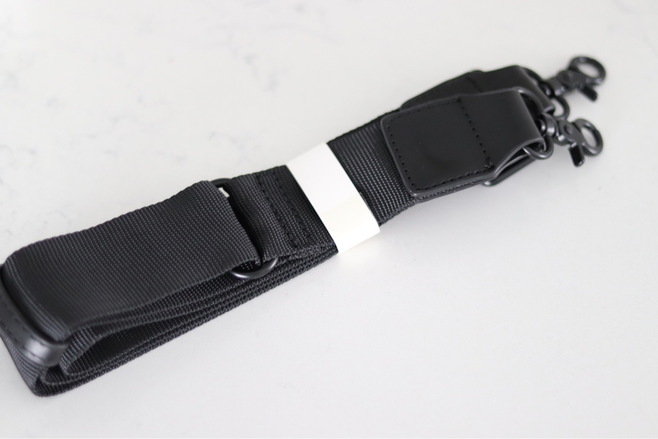 付属のショルダーストラップで、肩から掛けたり、クロスボディーで持ったりする事も可能なんです(長さの調節可)↓