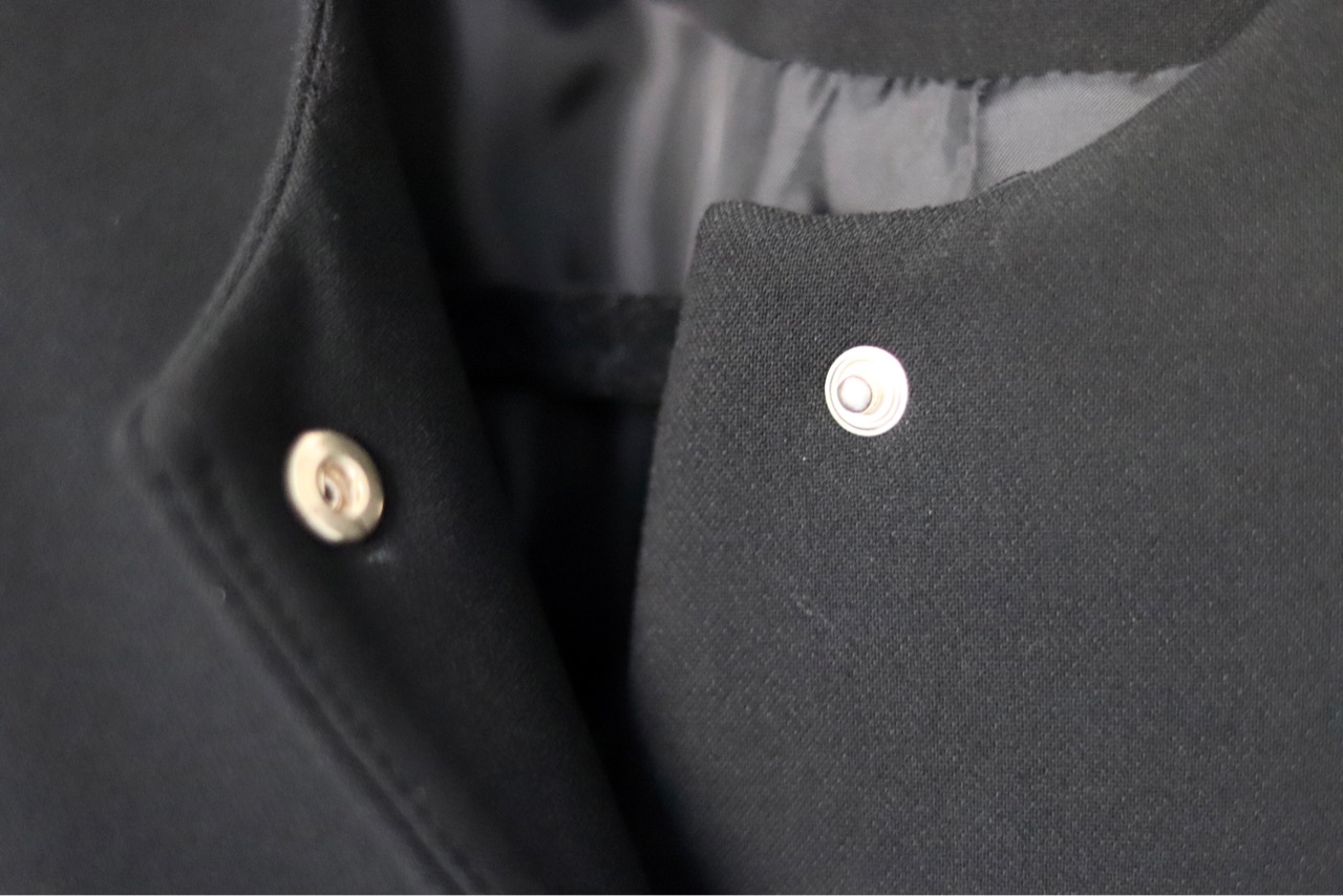 ”FITTED FROCK COAT WITH METAL BUTTON”。