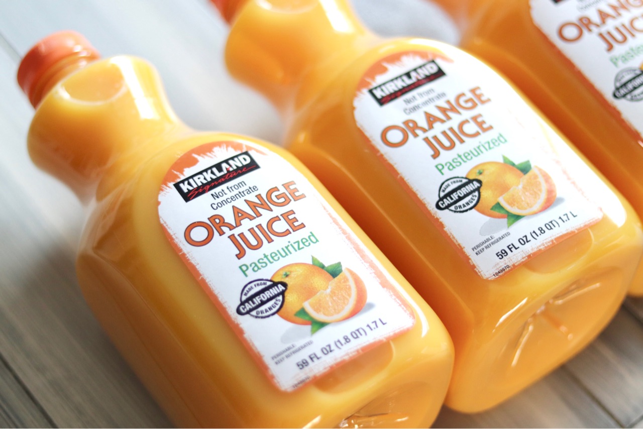 こちらもいつも購入する、Kirkland商品のオレンジジュース(No Pulp、濃縮タイプではありません)↓
