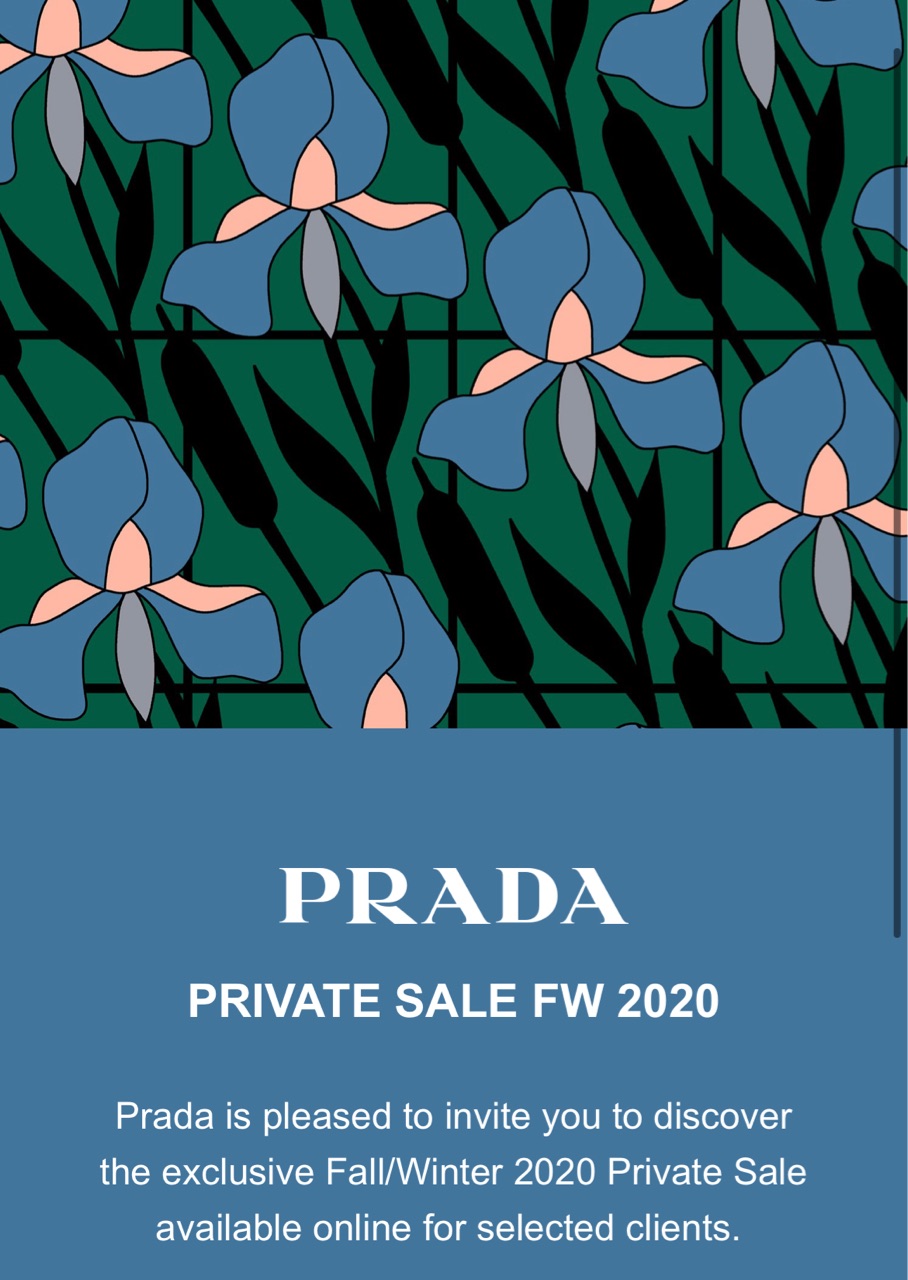 その数週間後、Pradaのオフィシャルオンラインで、プライベートセールが行われるというemailが来ました↓