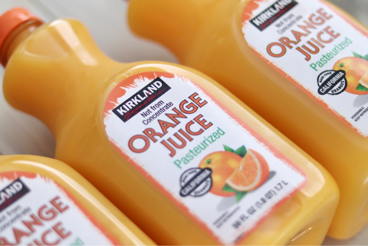 いつも購入する、KIRKLAND商品のオレンジジュース↓