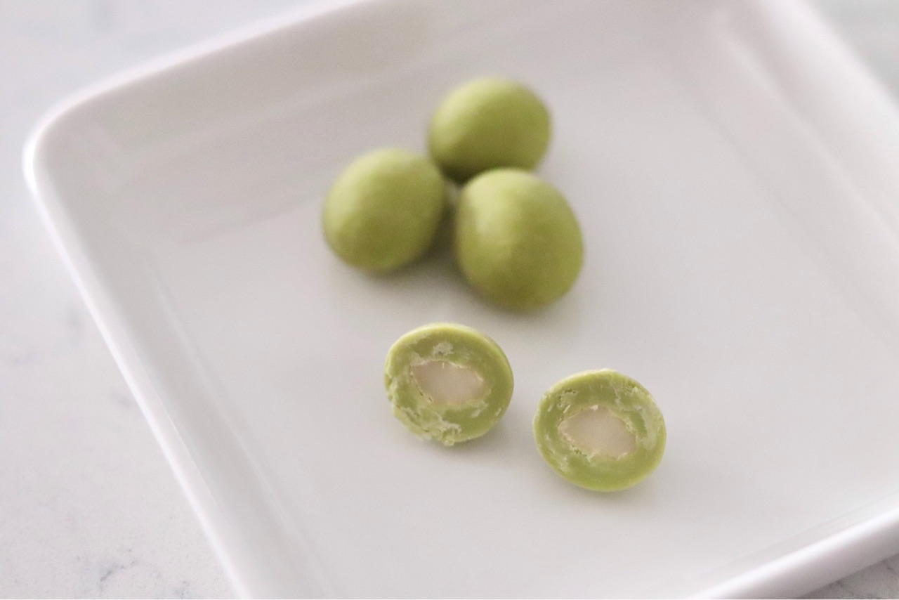 中にマカダミアナッツが入っていて、その周りに抹茶チョコレート。