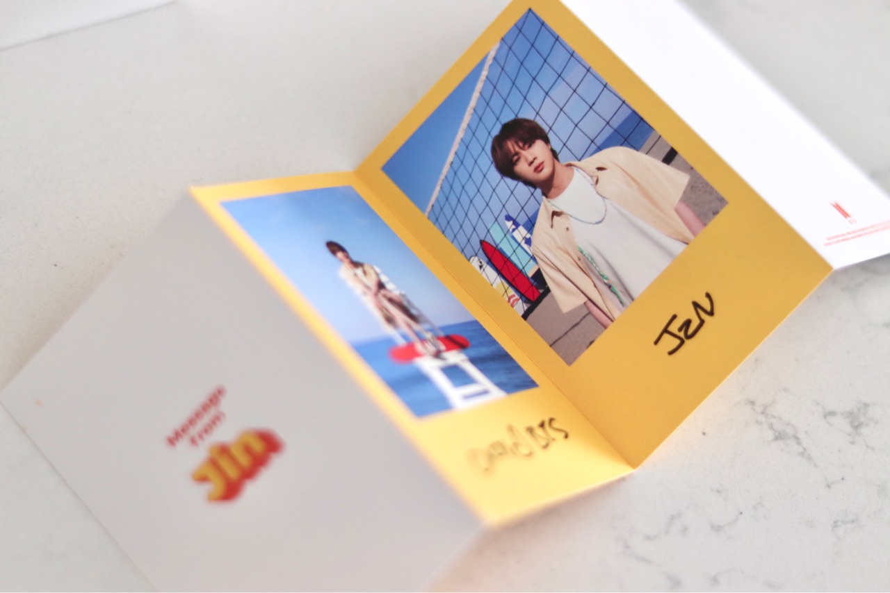 BTSの商品って、メンバーのカードがランダムに同封されていて、開封するまでどのメンバーが入っているかわからないので、箱を開けるまでドキドキワクワクします。