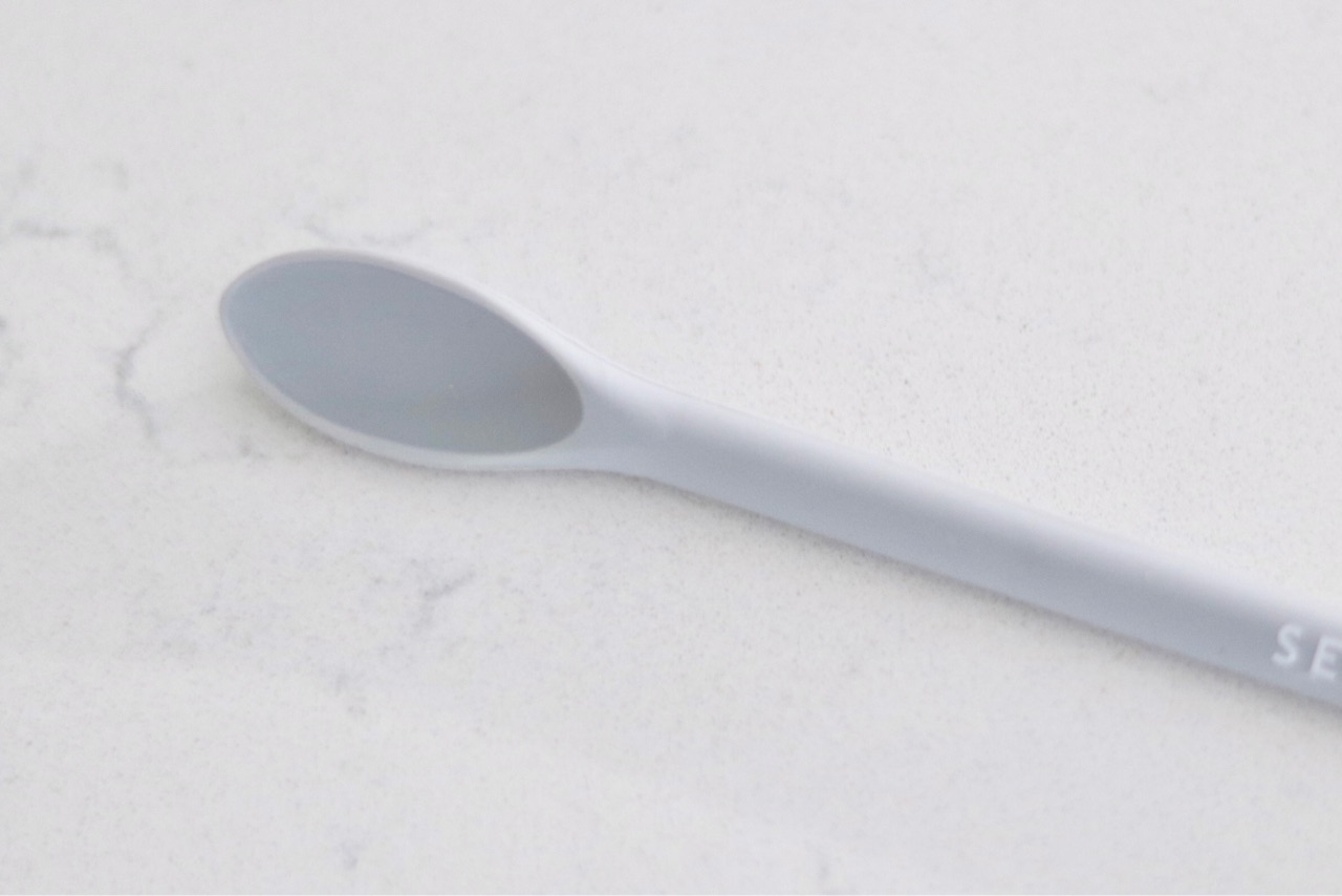 シリコン製で厚みもあるので、ふにゃっとせずしっかり底で液体やクリームをスクープできます↓