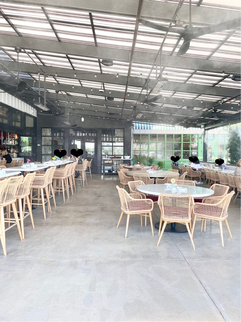 上からミスト、そして天井にはいくつも大きいシーリングファンがあるので、そこまで暑さは感じませんでした。