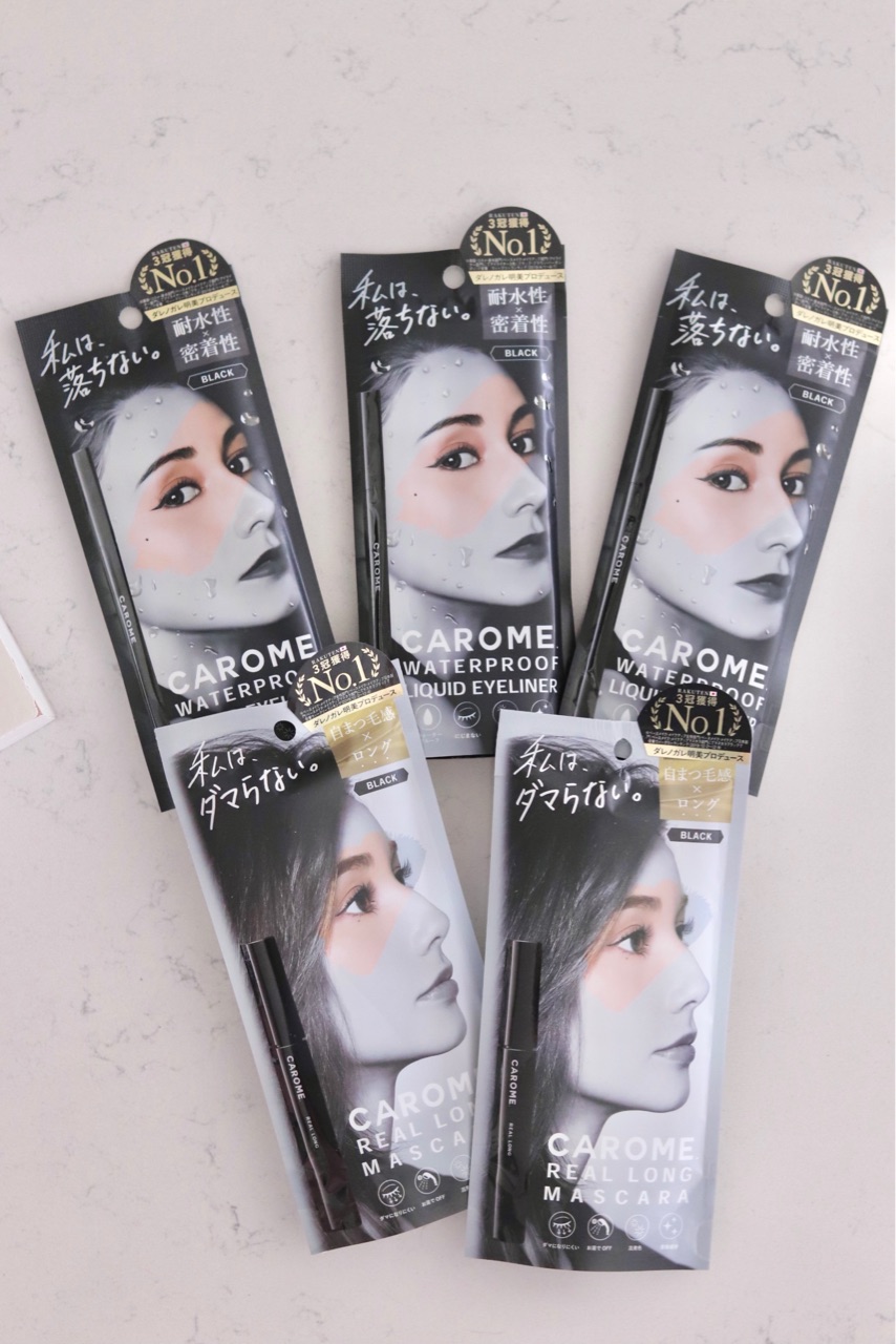 まずは、日本から取り寄せをできるときはいつも取り寄せている、ダレノガレ明美さんプロデュースのCaromeのマスカラとアイライナー↓