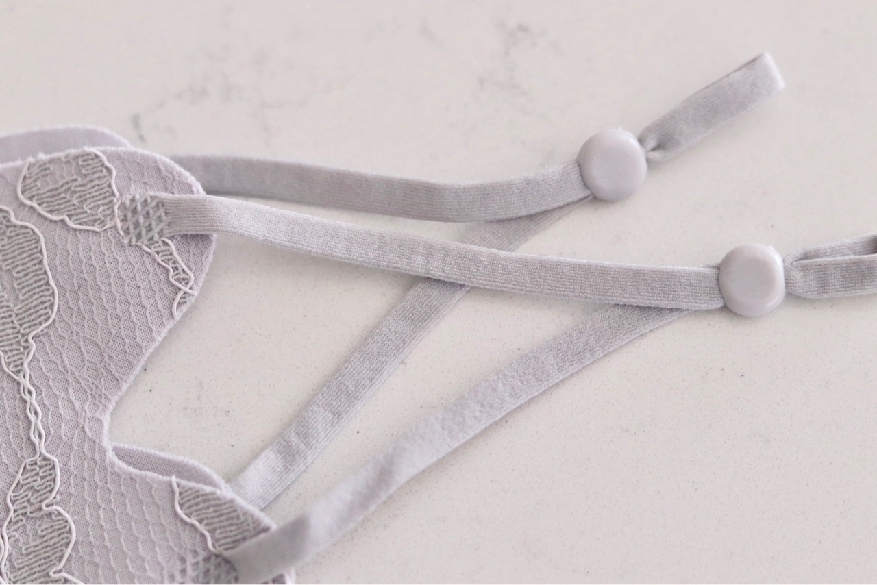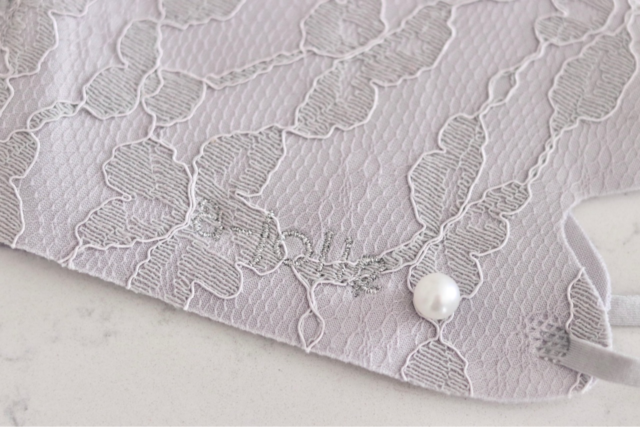 マスクには、パールの飾りと、(パールの隣に)”a-jolie”の刺繍ロゴが付いています↓