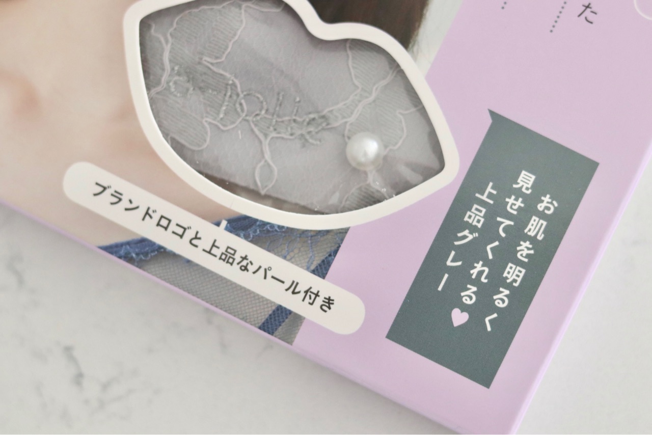 鼻の上部から顎の下まで隠れ、生地のグレーが反射して、肌に透明感を出してくれます。