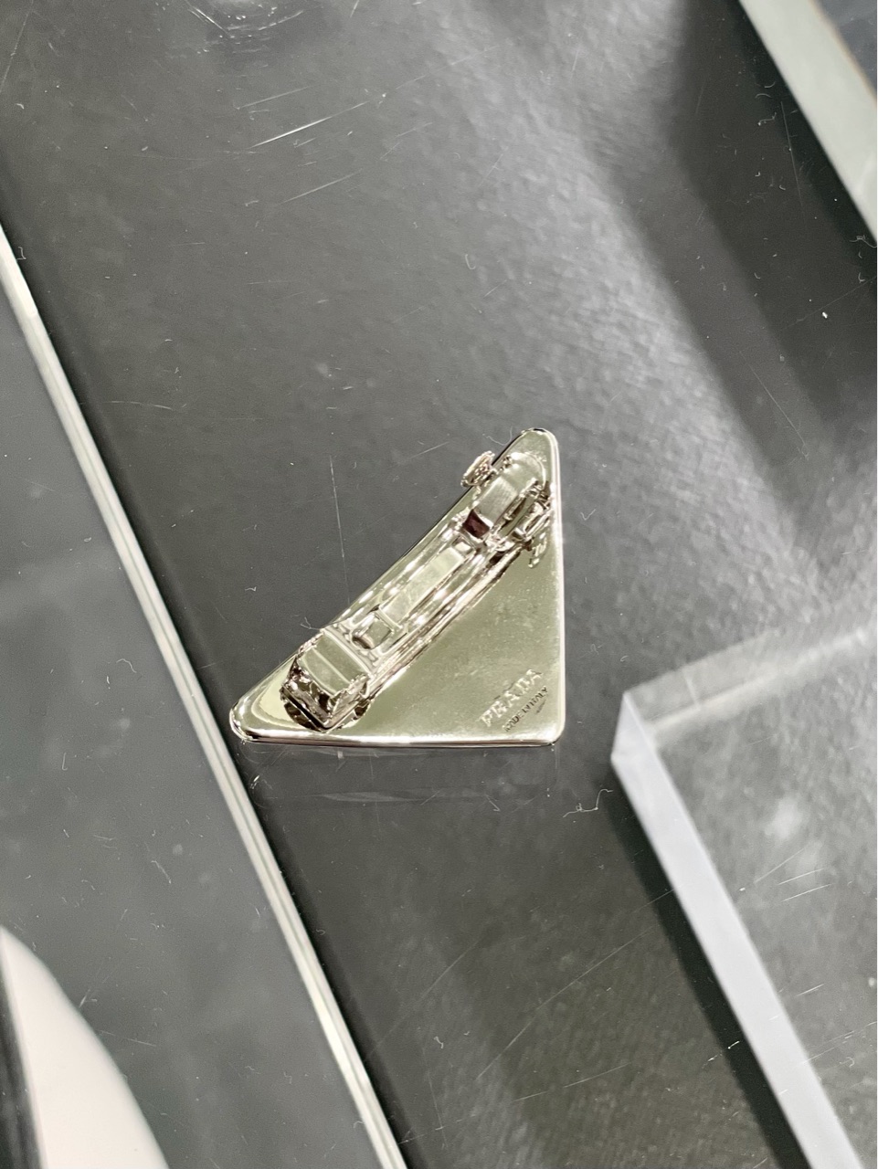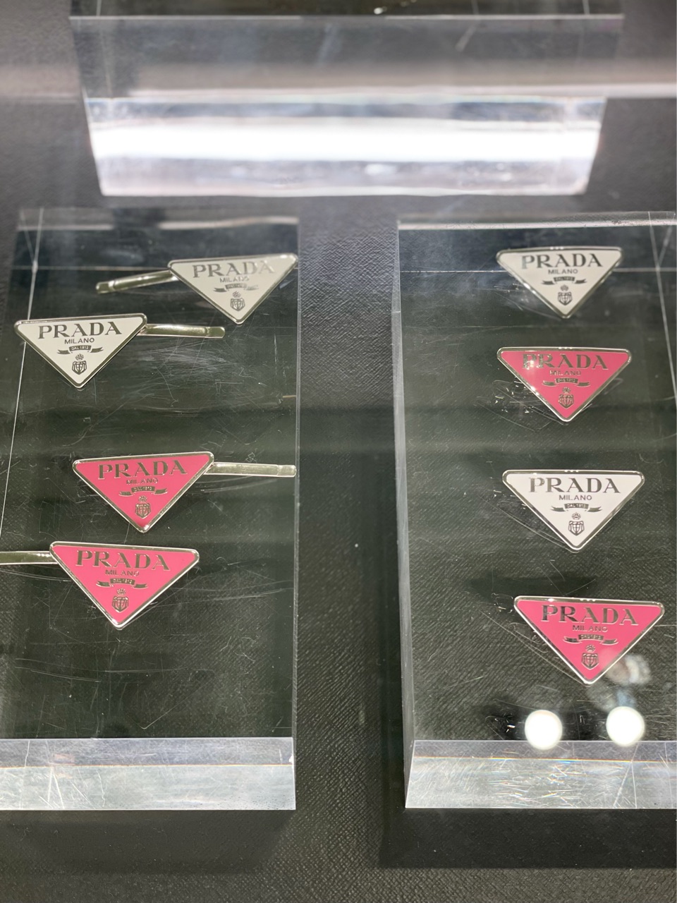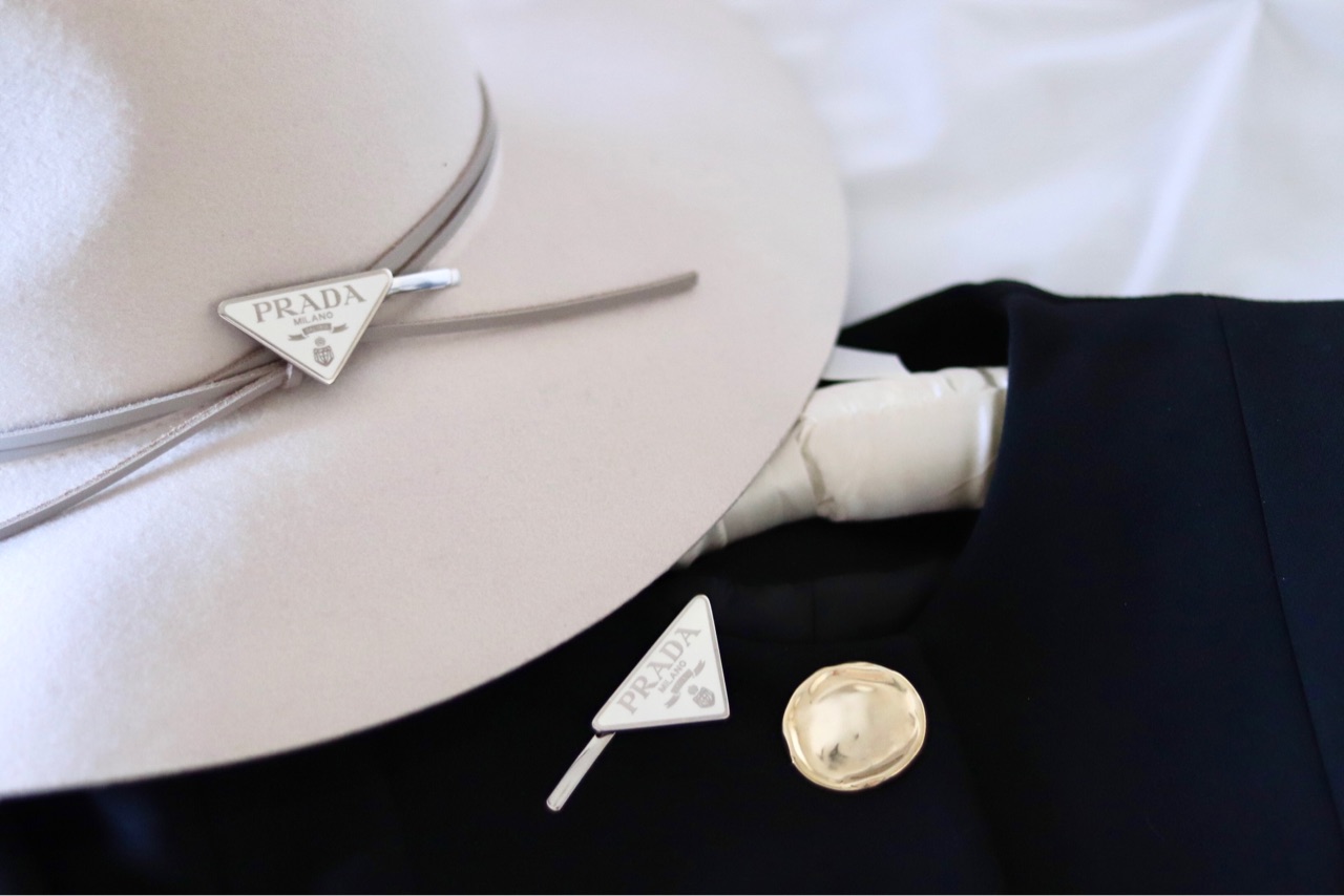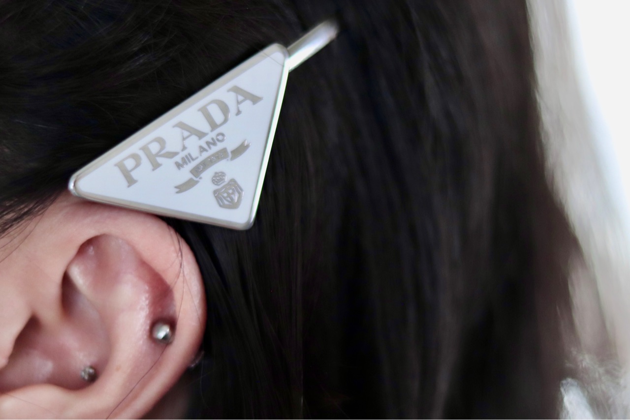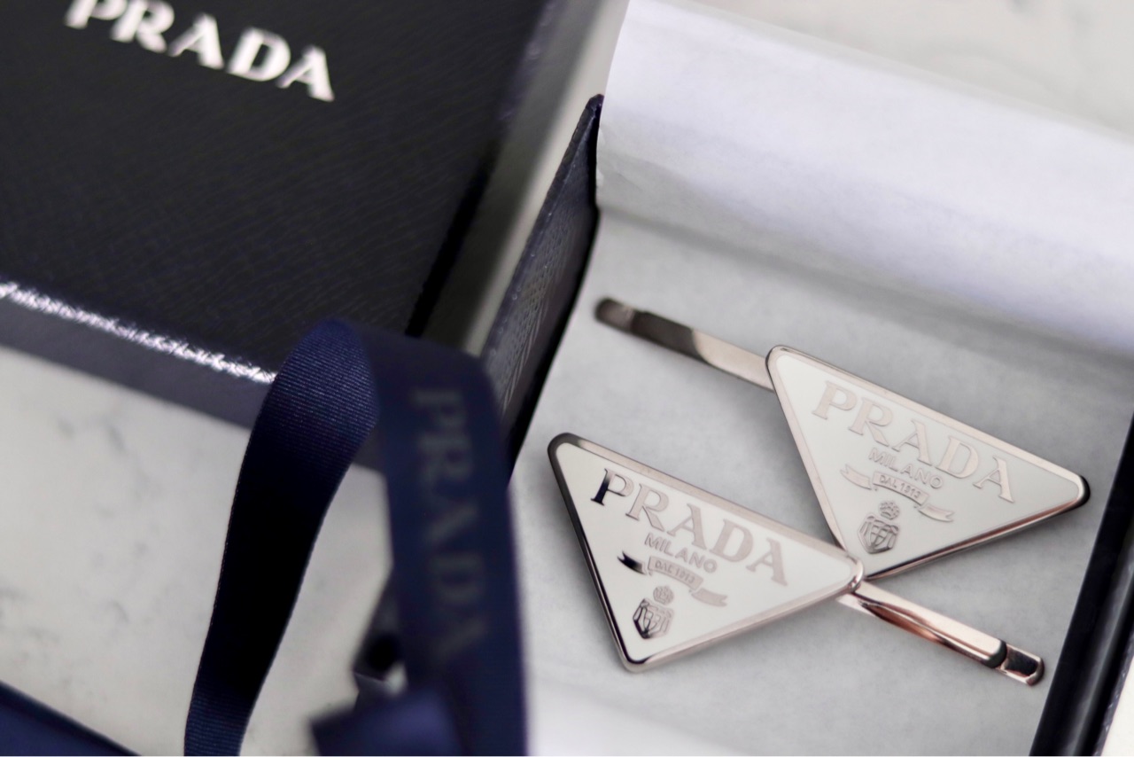 ヘアピンタイプは、2本付きでPRADAのエンブレムが左右別の方向に付いているので、髪に止める向きを気にしないでピンを付ける事ができます。