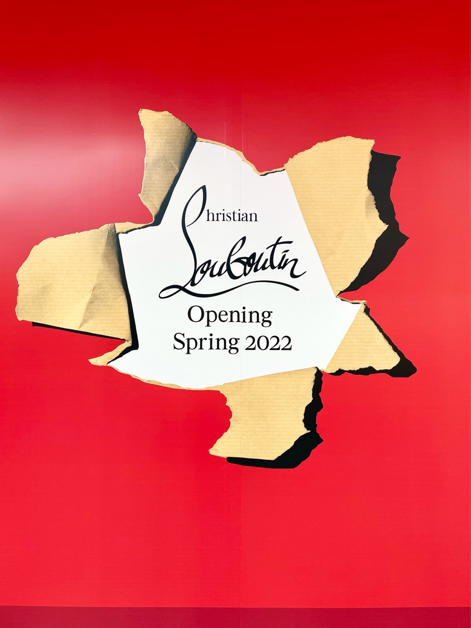 Neiman Marcus(全米展開する高級デパート)に向かう途中、閉店しているお店の壁の前には、ルブタンのお知らせが…↓