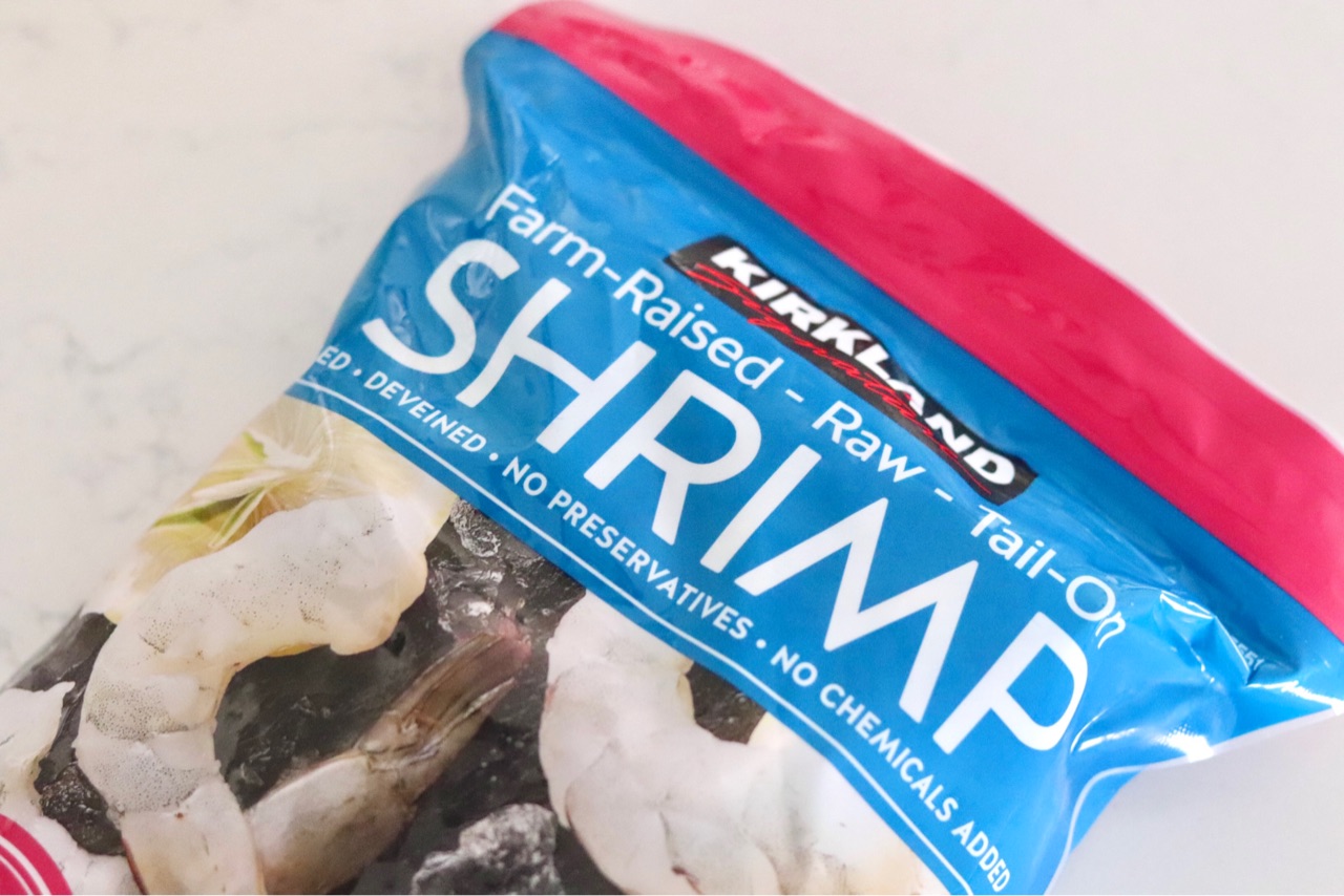 いつも購入する、Kirklandの冷凍海老($15.69)↓