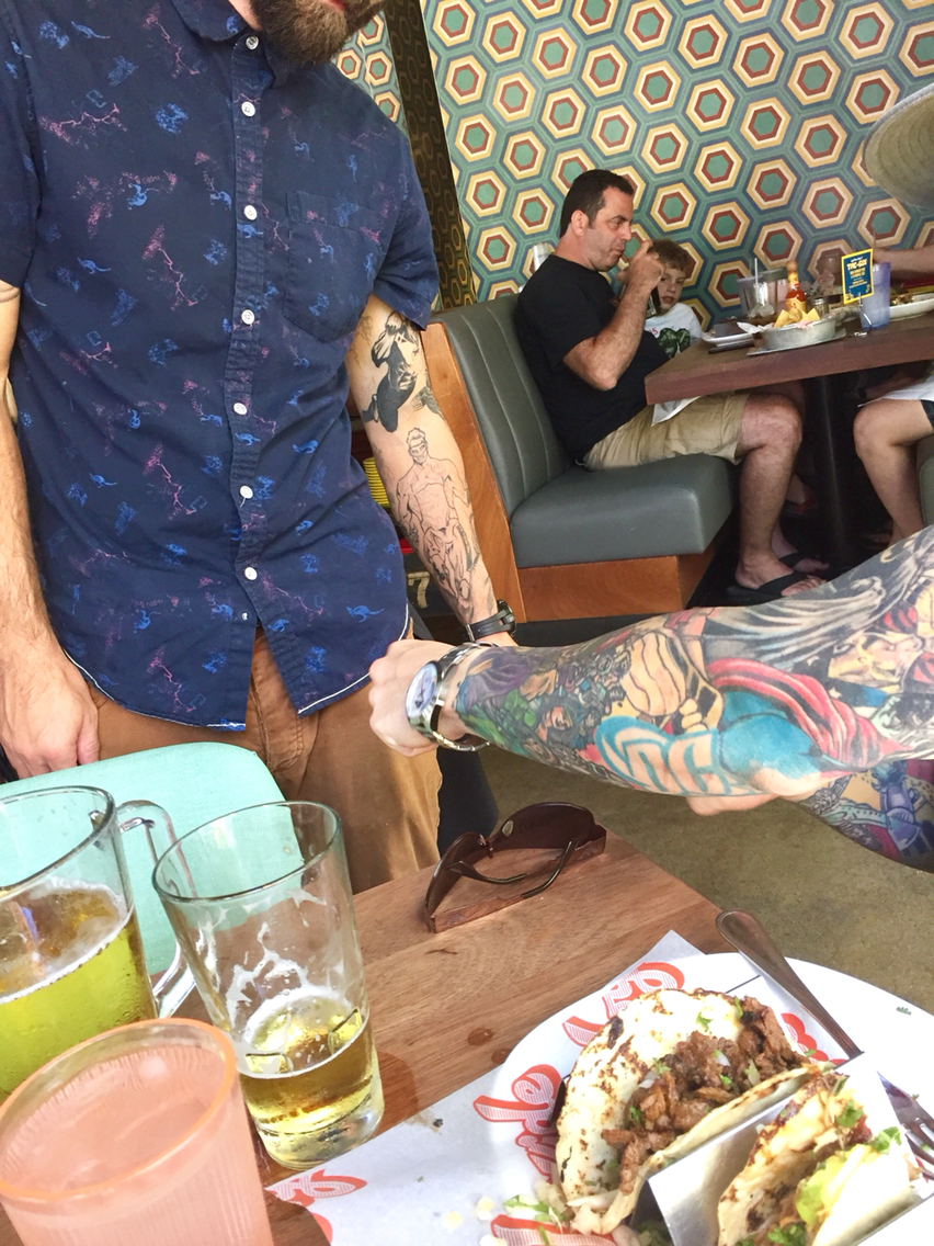 ジャスティンも2種類のタコス+ビーンズをサイドでオーダー。