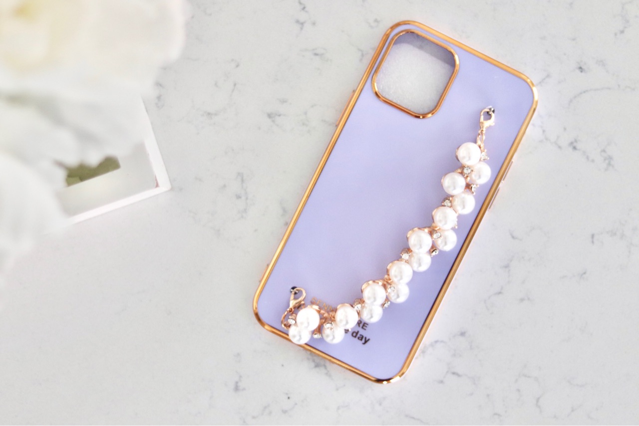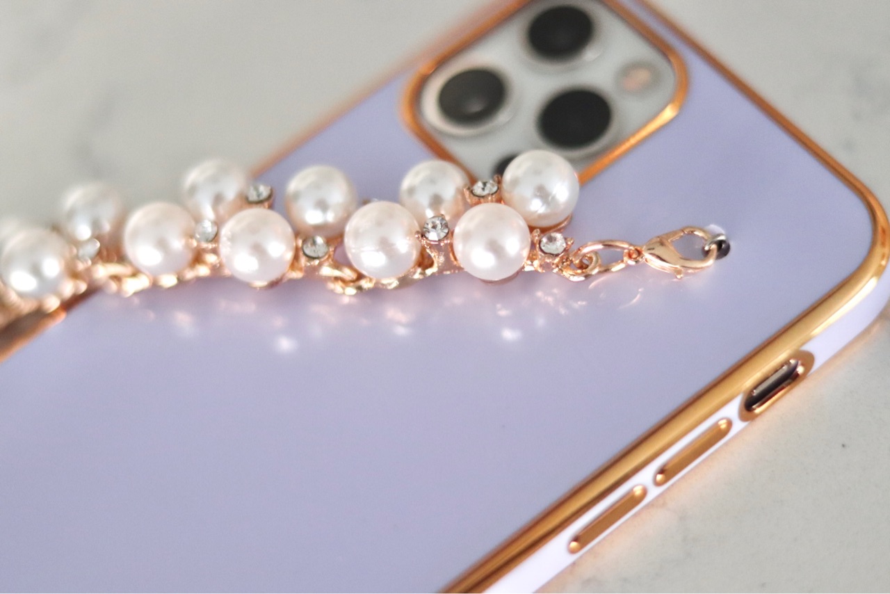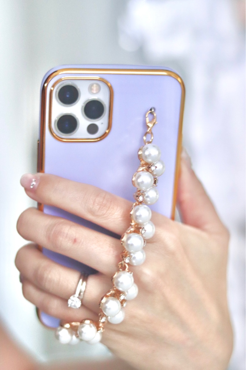 スマホケースの、Faux Pearl Hand Strap Phone Case 。(オンライン→★)
