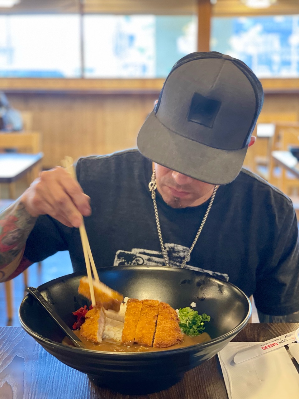 彼はカレーが苦手なんですが、トンカツが食べたかったらしく、カレーをオーダーしました。