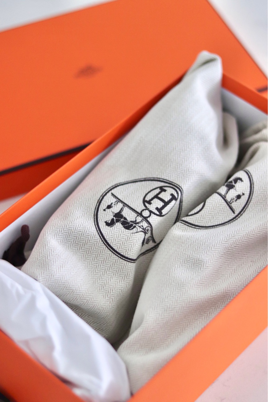 エルメスといえば、茶色やオレンジですが、いつもモノトーンばかり着ている私は、履く勇気もないし...