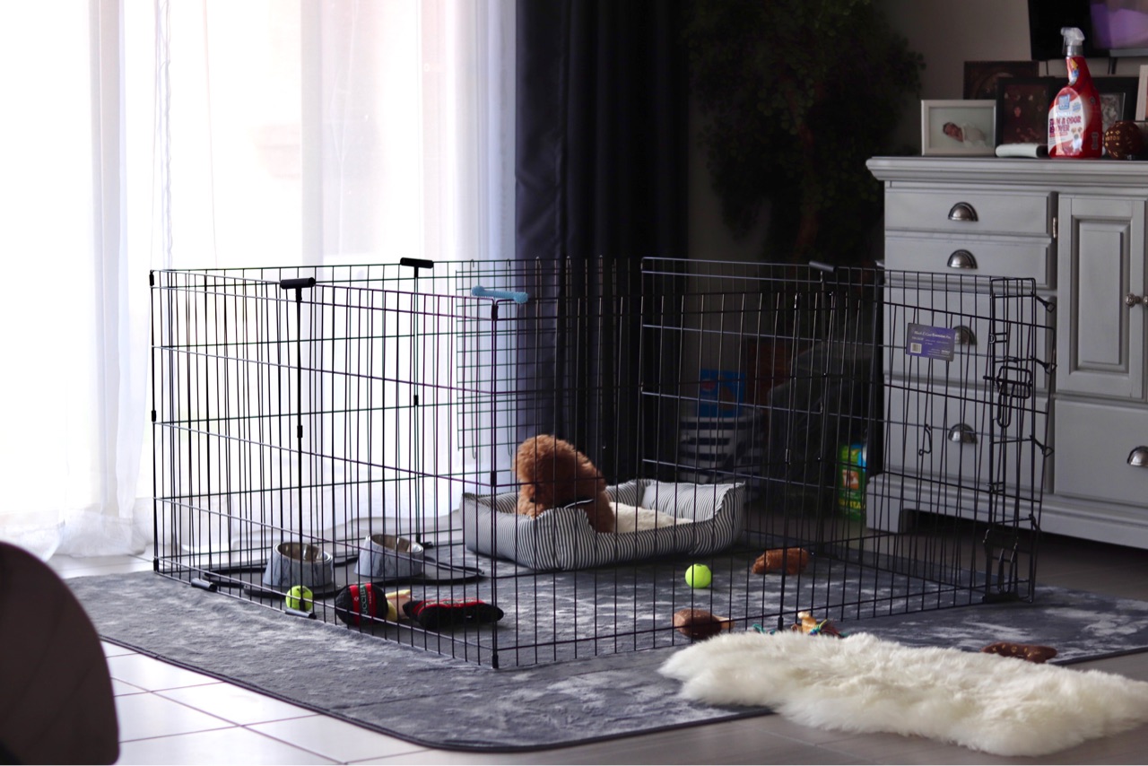 でもそのお陰なのか、1日目の夜はリビングのこのケージの中で↓1人で朝までゆっくり寝てくれてビックリ!