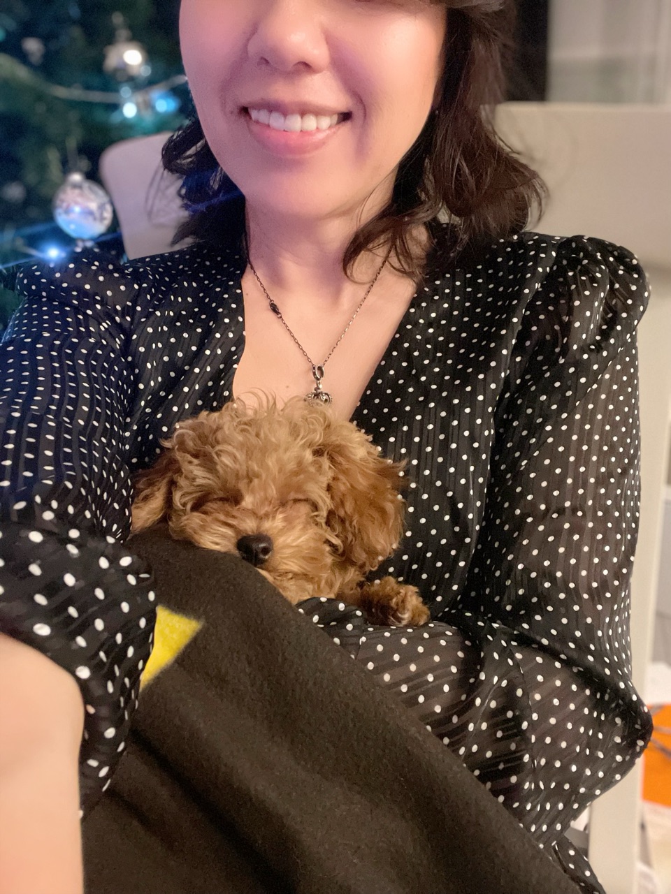 そんな中、ワンコを迎える前日(私がLAに滞在中)夫からテキストが入り...