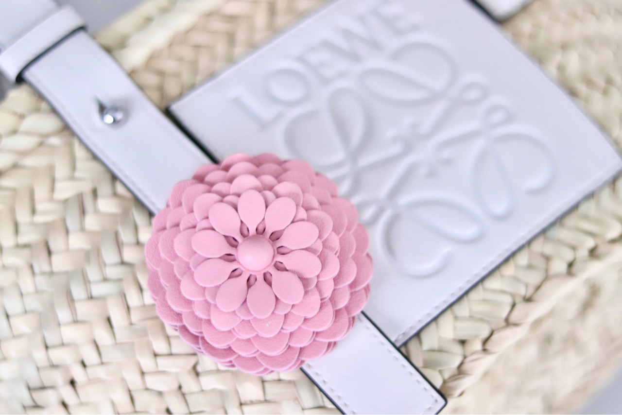 LOEWEのバッグは、この様にハンドル部分やストラップ部分にアジャスト用のホールが開いているものが多いので、このスタッドフラワーを飾る事ができるんです。