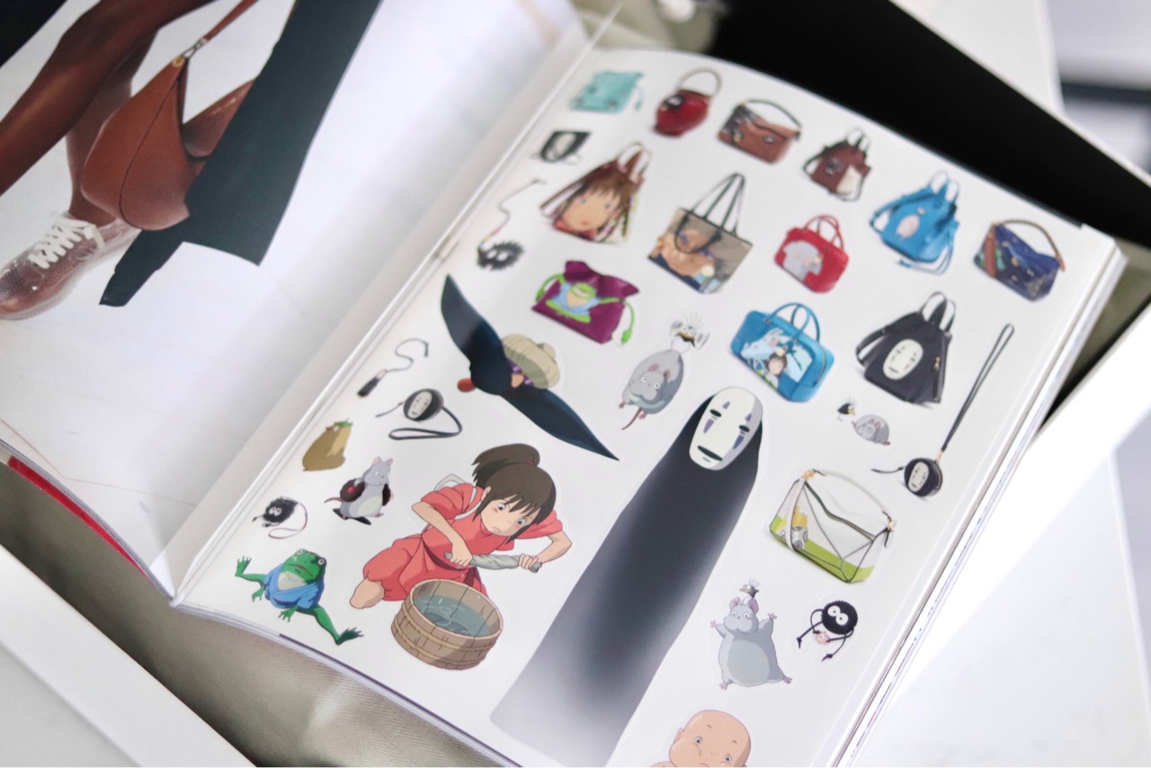 ソフトカバーの雑誌の様なカタログで、今LOEWEで話題のスタジオジブリ『千と千尋の神隠し』とのコラボのコレクションの写真が沢山載っていて、千と千尋の神隠しのステッカーが入っていました↓