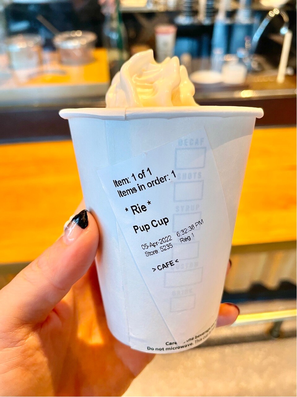 しかも、オーダーステッカーには”Pup Cup”と書いてあり、パプチーノ用のオーダーの項目もあるんですね笑↑