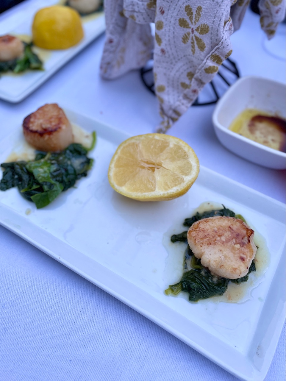 帆立はレモンバターソース、帆立の下に置いてあるほうれん草はガーリックソテーでとても美味しかったです。