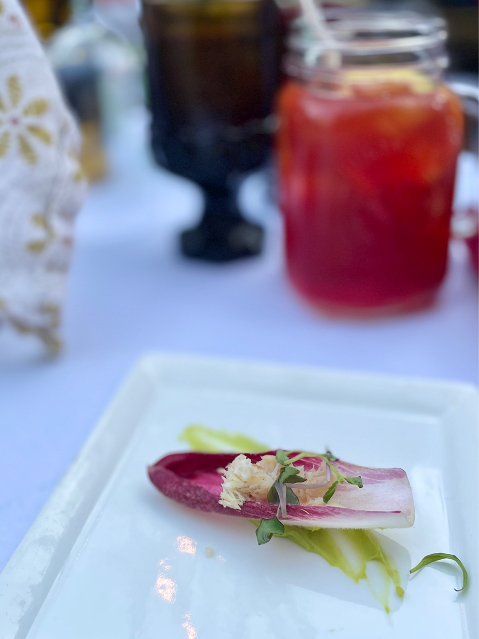 お隣に座った男性カップルは、こちらのキャビアスペシャルをオーダーしていて、アペタイザーの前にチーズ+キャビアのプレートがサーブされていました。