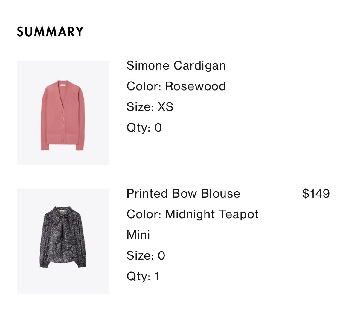 カーディガンだけだと$200以上の会計にならないから($50オフのバースデープロモーションコードが使えない)、ブラウスも購入したのに…