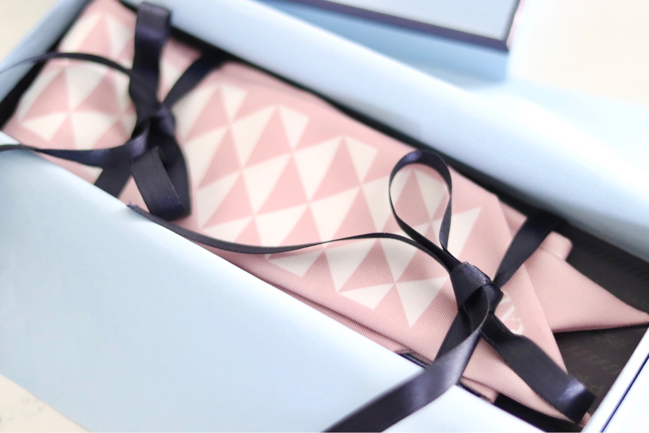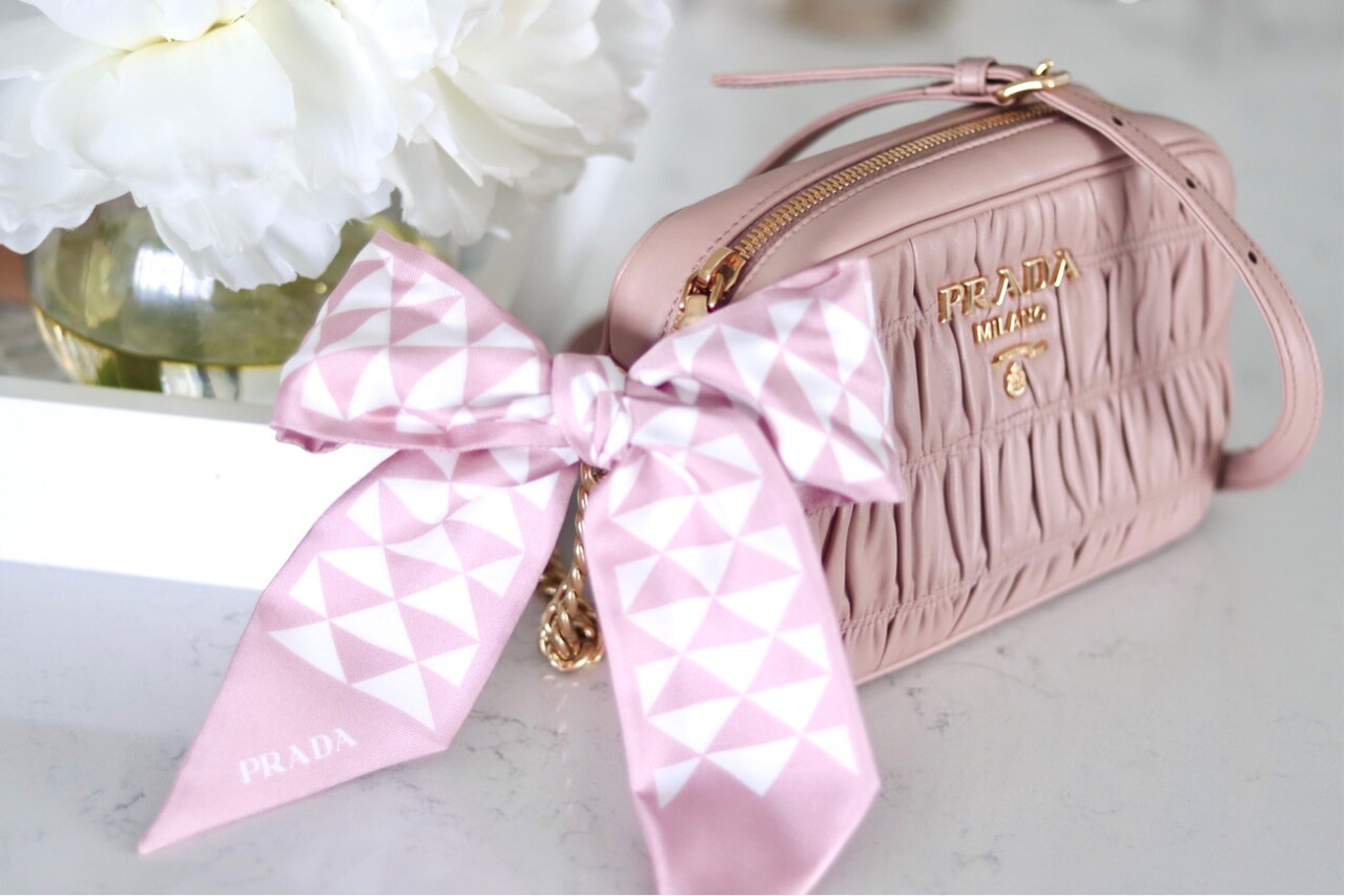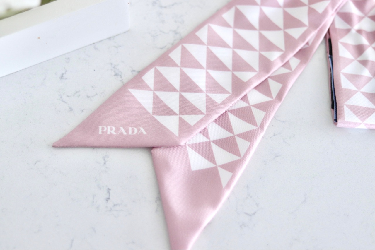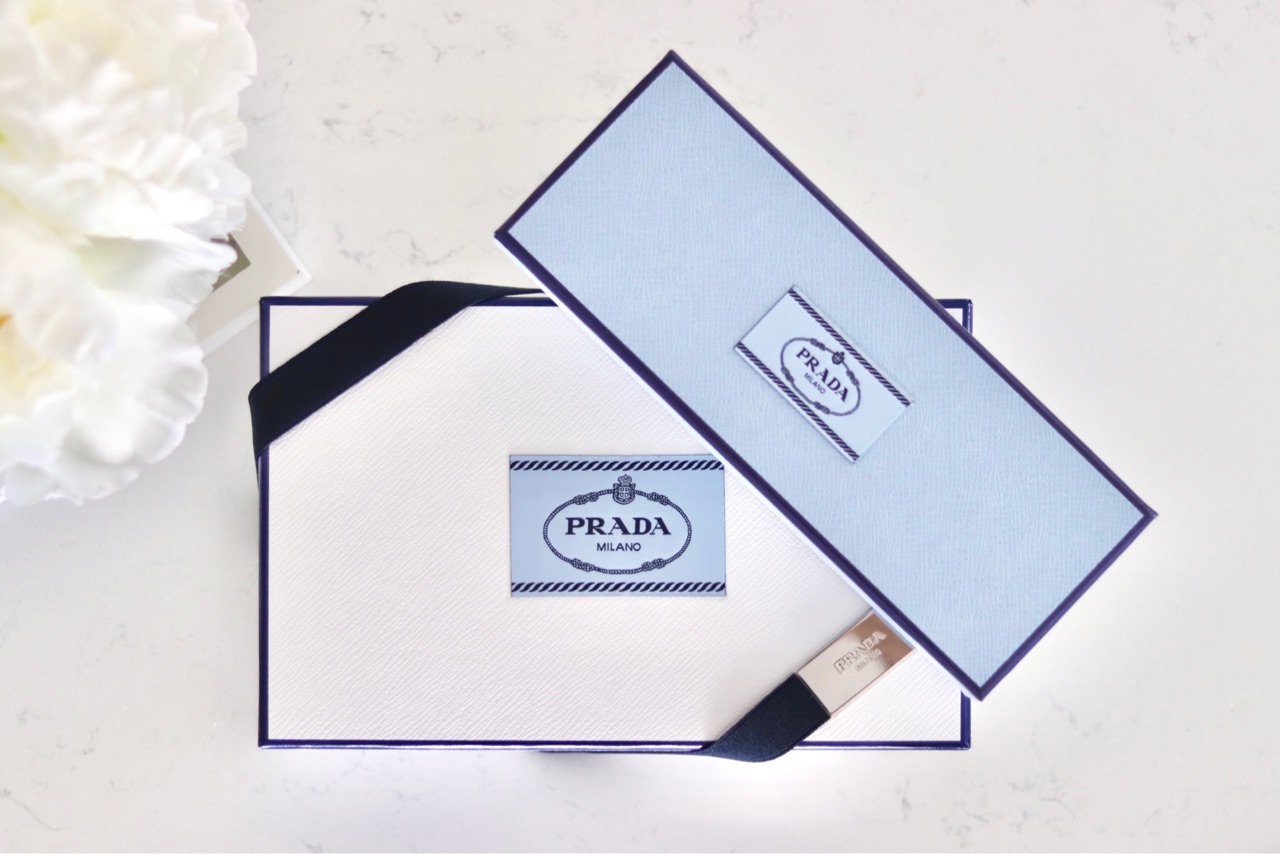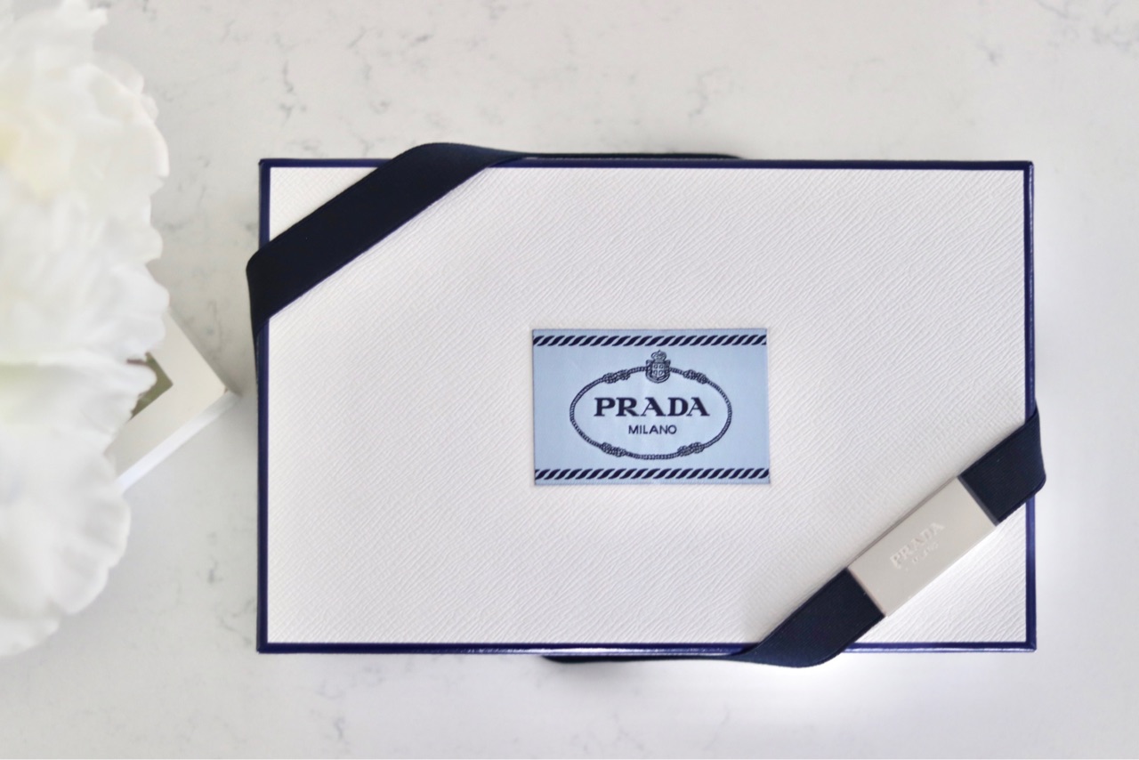 プラダのtwill Scarfは2本目ですが、スカーフ購入時に入れてくれる、このボックスとリボンが可愛いです↑