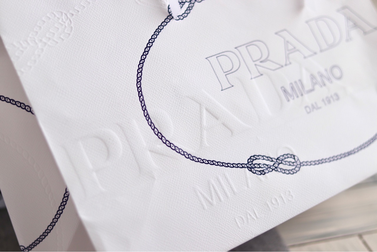 アウトレット用のショッピングバッグって、”PRADA”と書かれているだけだから、この立体になっているPRADAの文字が好きです↓