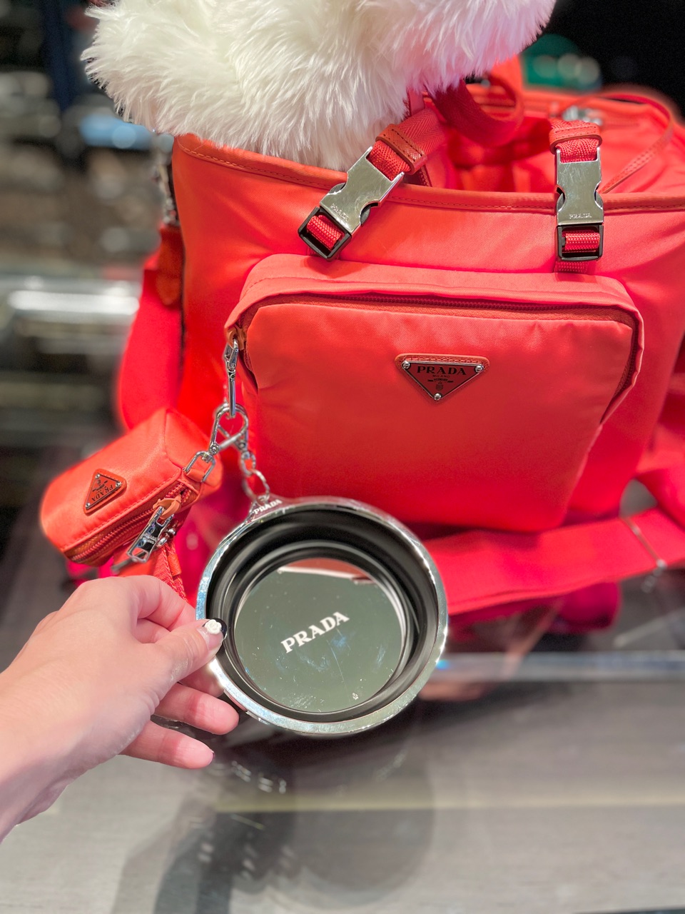 おそらく、ペットグッズをPRADAで買うなんて... と批判的に思う方もいらっしゃるかと思いますが、夫が「買いたい」とずっと言っていたので、今回は旅行の記念で購入しました。