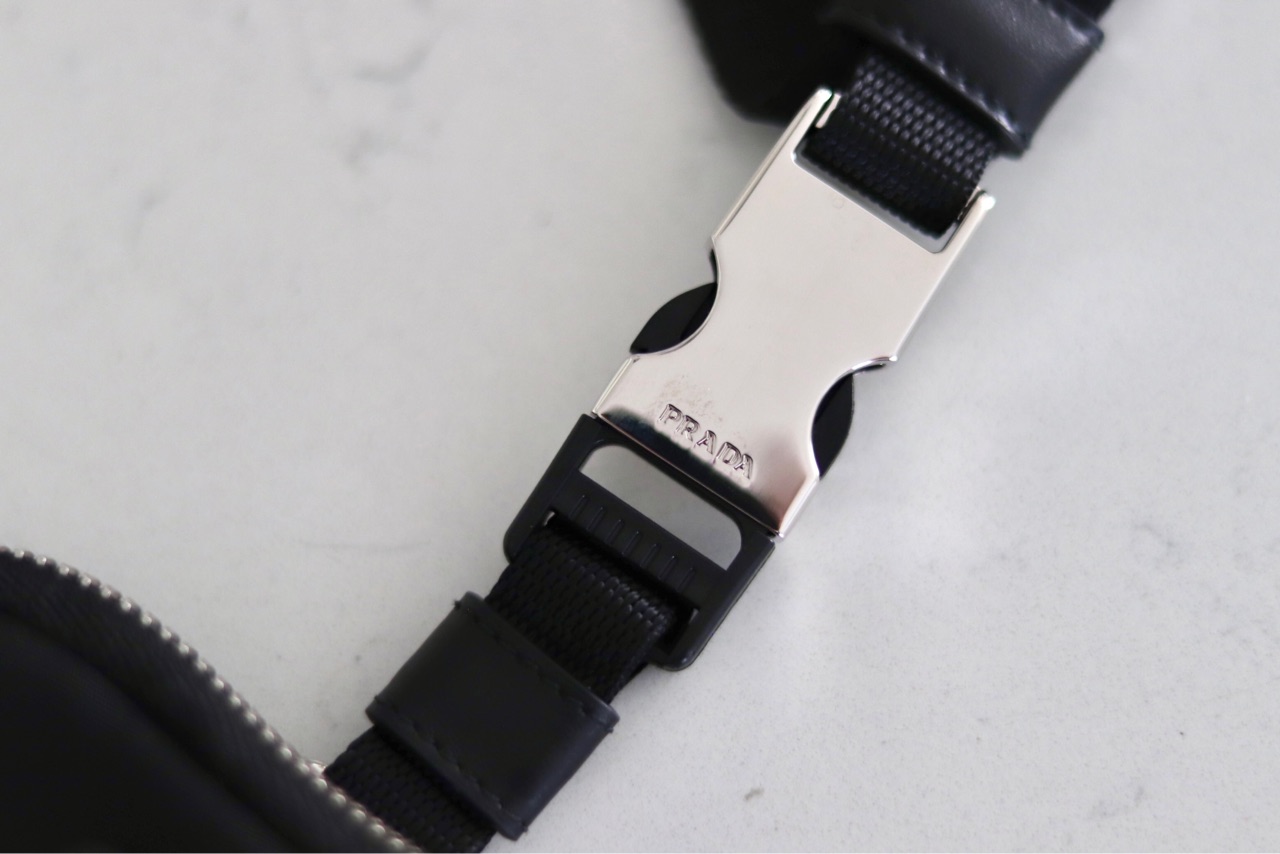 持ち手も結構頑丈↑、ハードウェアには”PRADA"の文字が入っています↓