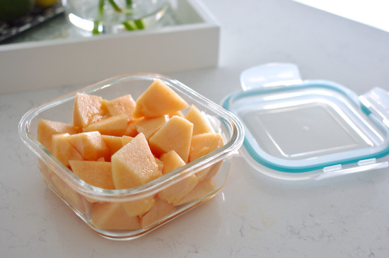 朝、メロンを切るのが面倒なので、半分だけ一気にカットして、コンテイナーの中に保存しておきます。