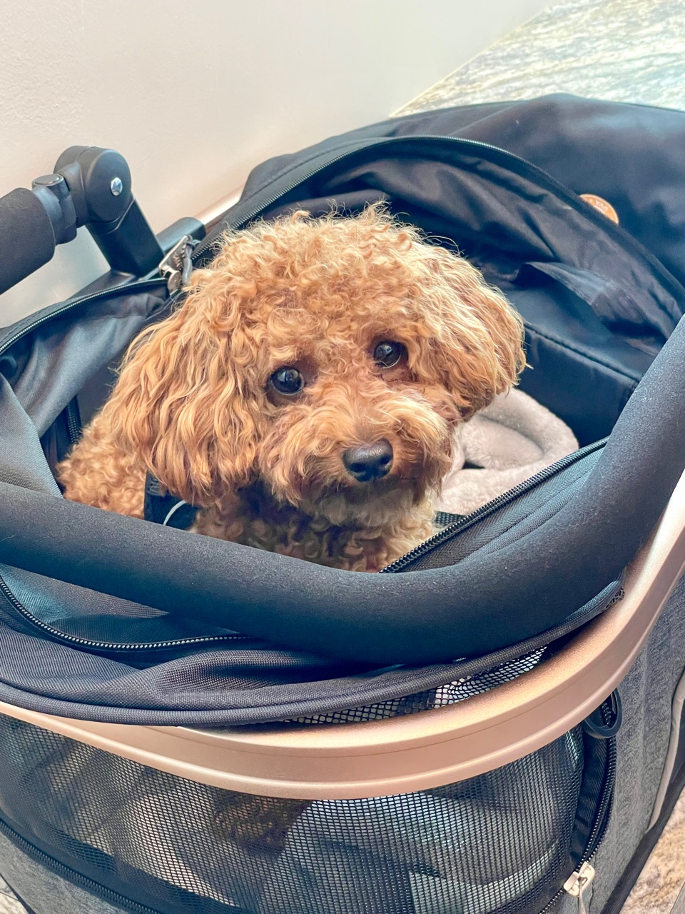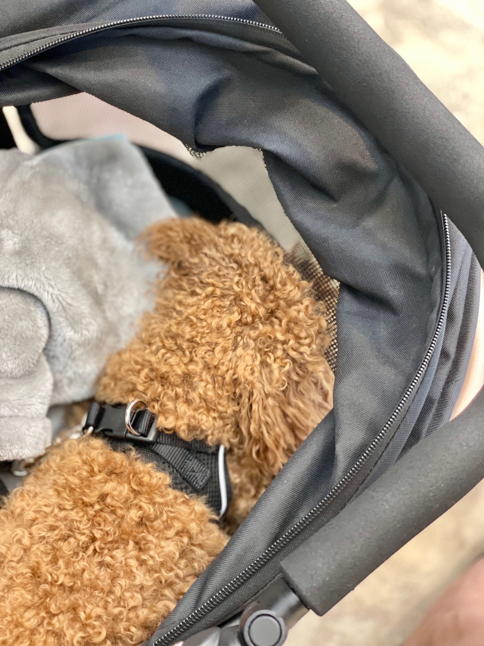 待合室には、大型犬が何匹かいたので、バスケットの中で隠れながらチェックしていました↑笑。