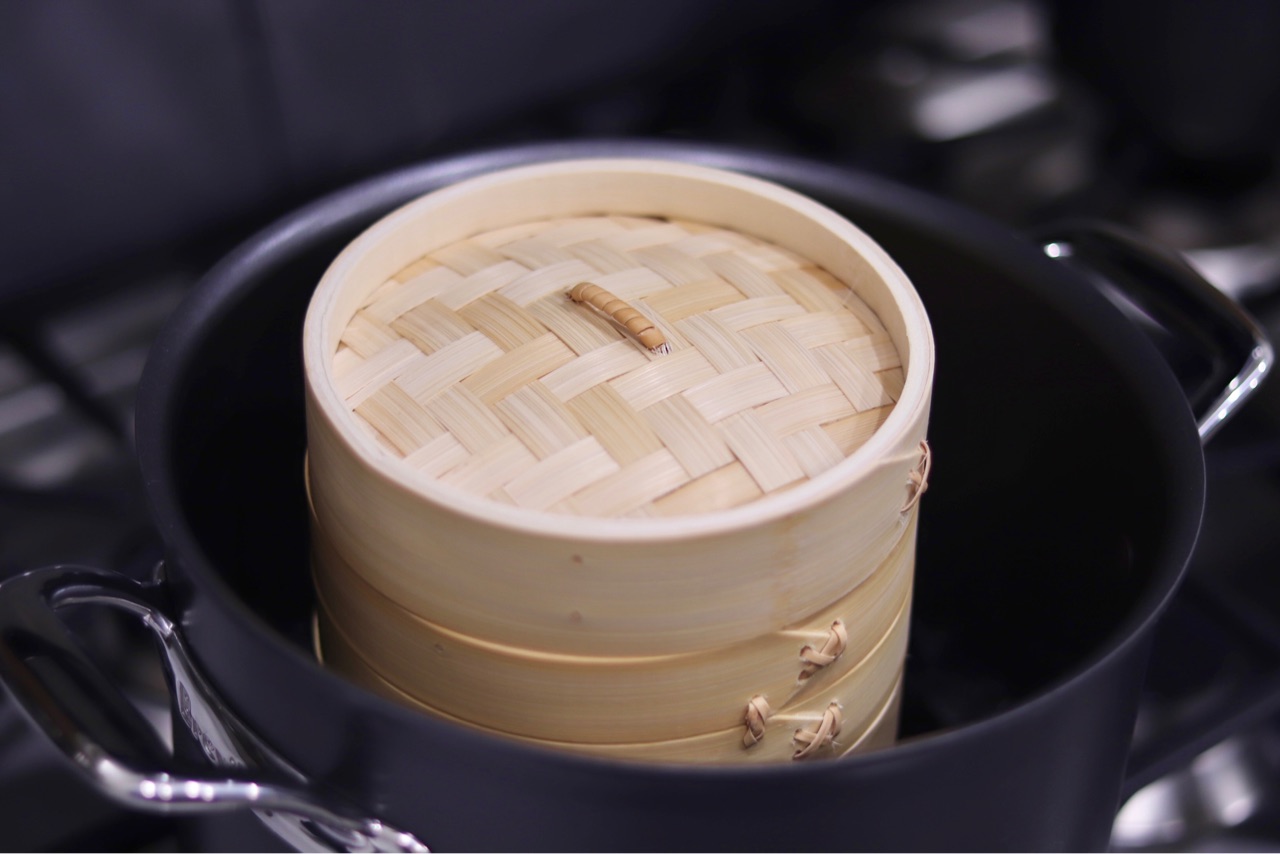 蒸し器は、小さい飲茶サイズのものだったので、2つしか肉まんが入りませんでした↓