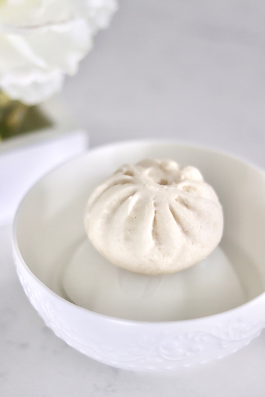 小鉢の上に肉まんを置き...↓