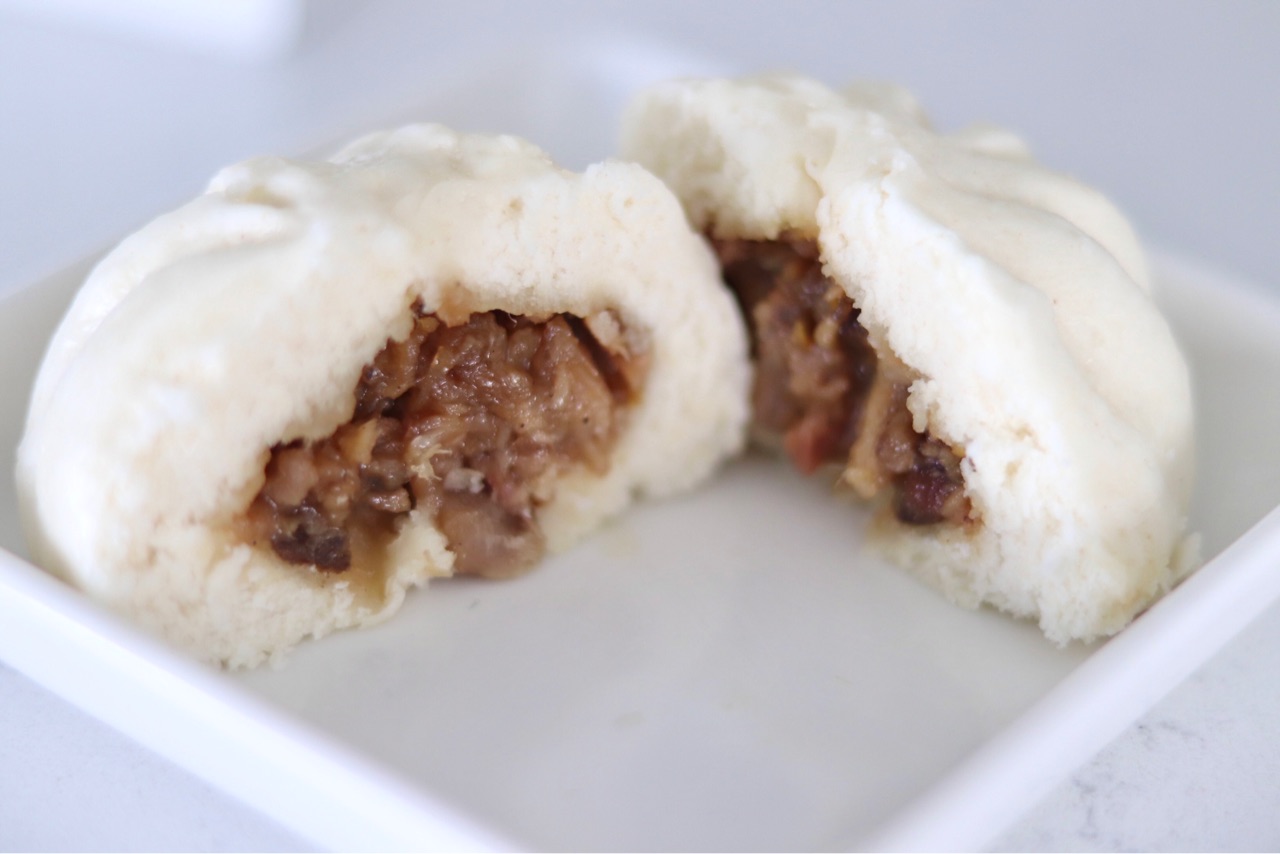 チャーシュー味のポークのしっかりとした味、ドウ(生地)もふわふわで少し甘みがあり美味しい❤︎