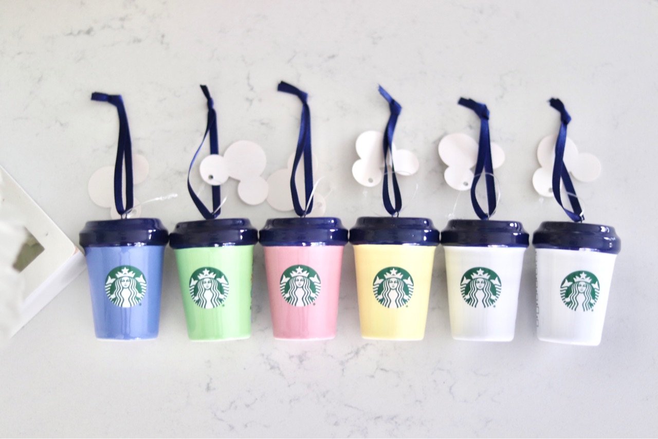 去年11月にディズニーランドに行った際、スタバの隣にあったお土産屋さんでスタバとディズニーコラボのオーナメントを色々購入しました↓