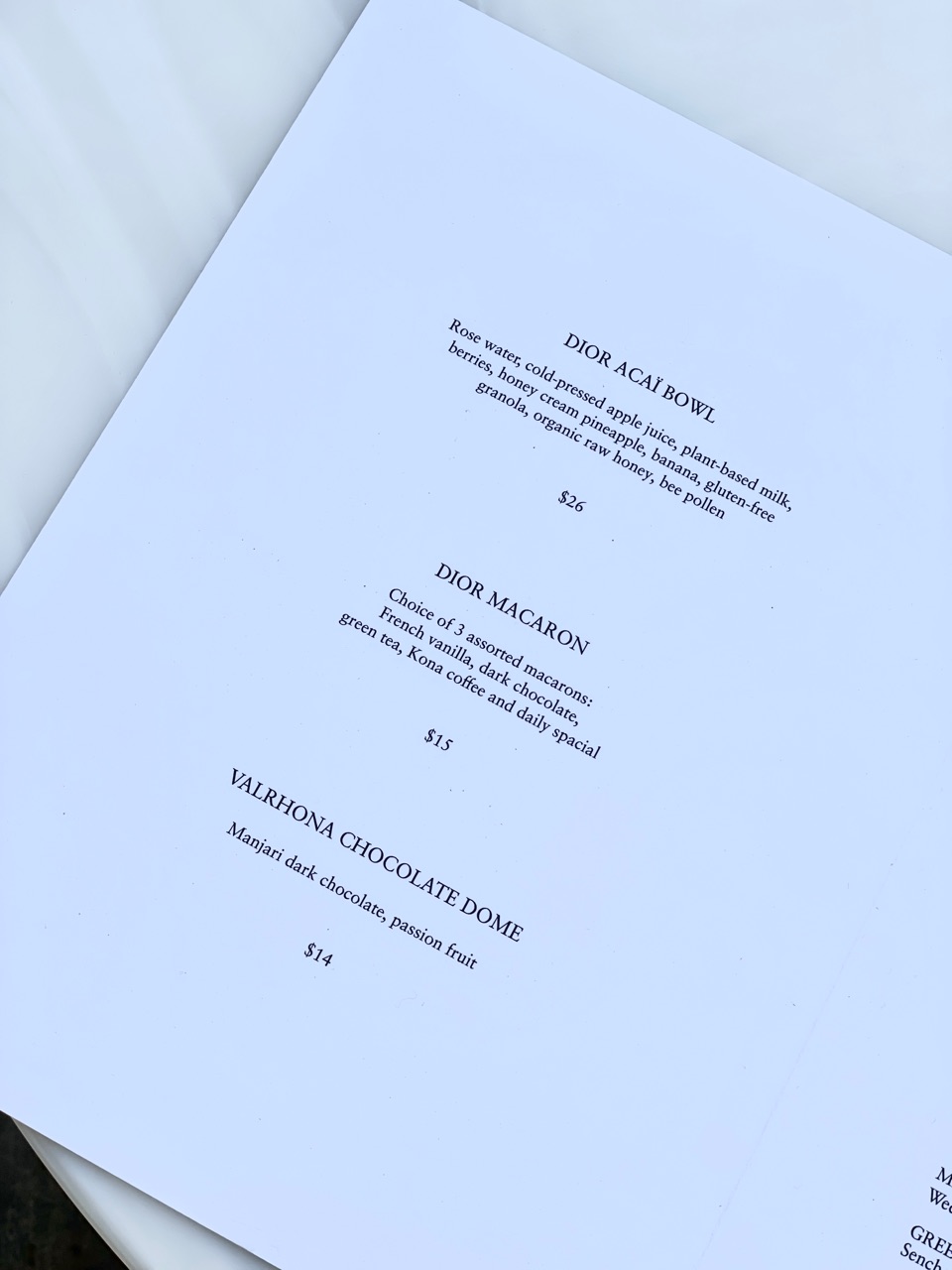 日本のディオールカフェより食事のメニューが少なかったですが、もともと食事をする予定ではなかったので、ディオールのショッピング後にお茶しました☕︎