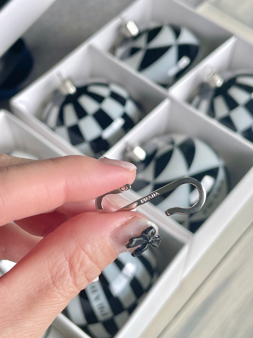 オーナメントと一緒に付いていたフックも、PRADAのサインが入っていました↓