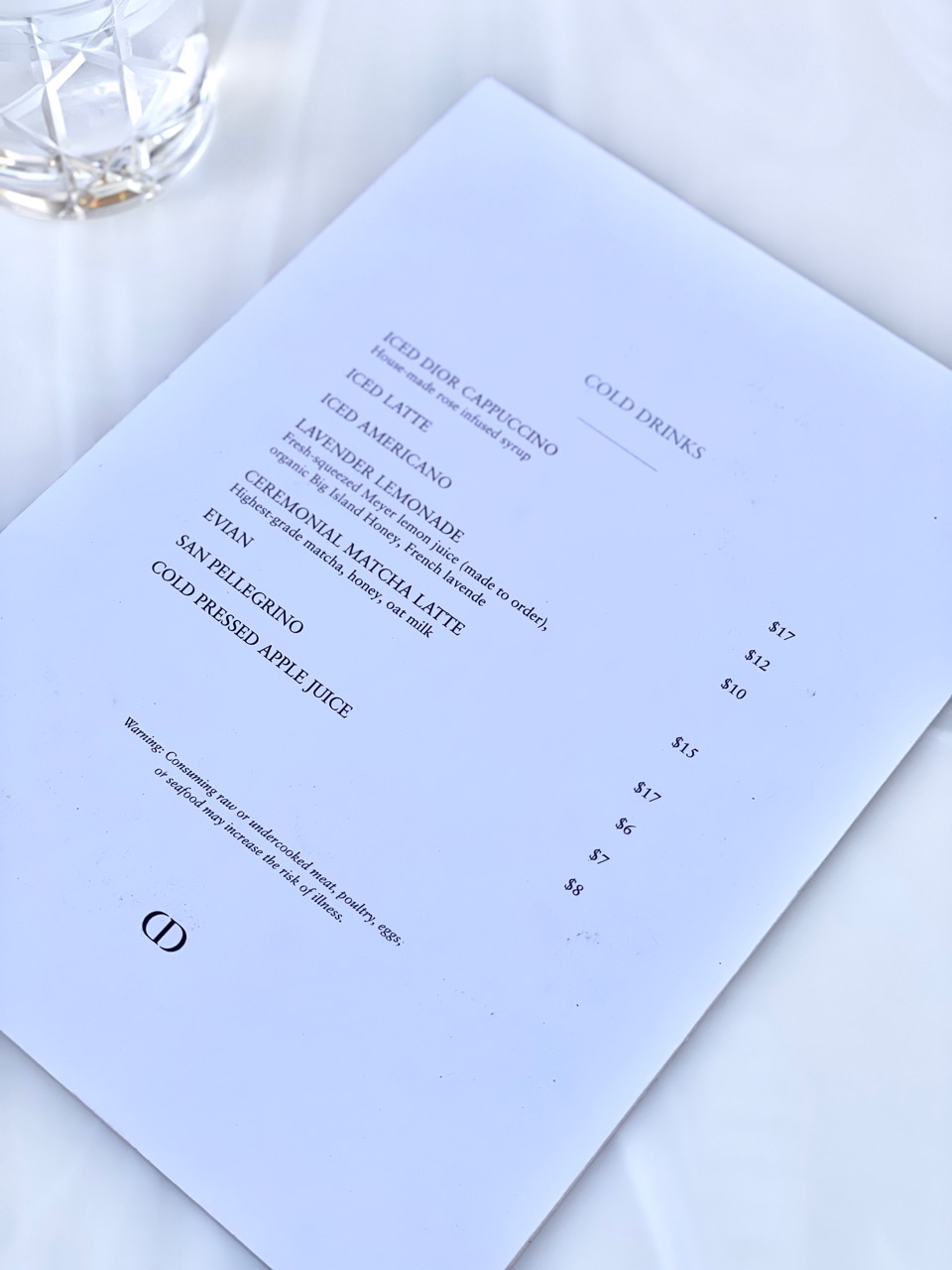 せっかくディオールカフェに来たので、いただきました($17+チップ)↓
